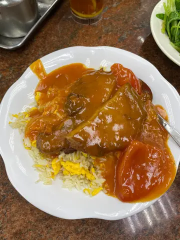 #20250701 🤍📍 #沙陇餐厅 大埔安泰路1号大埔广场地下71-72号舖➖➖➖➖➖➖➖➖➖➖➖➖➖➖➖➖➖#快餐D #茄汁猪扒饭 $48 🥢 #炒底 +$12💭 呢间野有强劲,帮衬左廿几年个餐牌都无转过,每次尼都会叫D餐,虽然炒底要加$12望落真系几多,不过加埋其实都系$60,同平时茶记价钱差唔多啦,但佢个炒饭真系粒粒干身,捞茄汁劲好味,略嫌猪扒既份量有啲少,靠食饭饱🥫.#干炒沙嗲猪扒河 $58💭 茶记有样特色就系你未必一定要叫餐牌上面既野,可以自己mix & match,只要伙记说有就有,呢度做既干炒沙嗲好惹味,而且猪扒有好多块,如果食干炒牛河食到厌不妨试下呢个😏.#腐乳通菜 $26💭 又系每次尼既必食item,咁大个人食过咁多间唔同舖头既腐乳通菜,暂时都仲未揾到间可以有呢度既咁岩口味,如果佢呢个腐乳酱出一樽咁卖应该有得谂🧐. 🥢 #冻柠茶 +$1💭 系快餐包埋既野饮,冻饮都只不过加$1,叫左少冰少甜,无错香港人就系咁麻烦😂即叫即冲,上枱果阵个茶底仲系热,啲冰眨下眼就溶晒,少甜所以会饮到茶既涩味,原来都几浓因为当晚已经失眠喇🥤.#大埔美食 #🐷在大埔 #🐷_食 …查看更多
