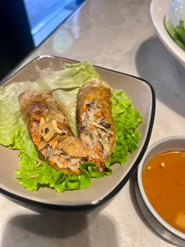喺公司加班成九点先收工,喺横街发现呢一间越越南菜舖头,仍然坐满客人。就决定买外卖回家,食物卖相吸引,估唔到味道亦都非常不错。✨极品牛三宝汤河 ✨汤底清而不淡,味道非常浓郁,带有地道越式香料香气👍🏻👍🏻。生牛肉鲜嫩红润,口感滑嫩多汁,牛展软腍,牛丸弹牙,配以软滑的河粉整体层次丰富,是必点招牌。✨越式河内三宝饭✨内含煎得金黄香脆的猪扒、鸡翼及扎肉,口感多变且非常滋味。猪扒厚身入味,搭配粒粒分明的白饭,香气扑鼻,令人回味无穷。✨越式香浓咖喱牛腩饭✨咖喱酱汁色泽金黄鲜亮,香气浓郁带微辣,牛腩肉质软稔入味,惹味得嚟非常送饭。✨越式手打虾饼✨外层炸得酥脆,咬下去啖啖肉,弹牙又不会太油腻。✨越式猪颈肉✨猪颈肉烧得焦香诱人,肉质嫩滑且多汁,配搭酸甜酸辣的调味汁,非常惹味,风味十足。食物风味十足,菜式选择非常多,价钱合理,难怪如此受欢迎👏🏻👏🏻 想睇更多介绍,马上Follow我啦😁。 #河内越式料理 #越南菜#big_big_foodie #big_big_foodie食匀尖沙咀 #big_big_foodie食匀香港 …查看更多