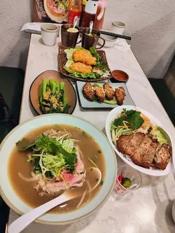 **餐厅环境:** 地舖位置方便,装修简约,座位ok~ **👨🍳 服务:** 职员态度友善,见我拣唔定仲主动介绍招牌菜,上菜速度亦快⏱️! **🍜 食物评分:** **1. 河内小食拼盒 ** 虾饼同春卷最出色!虾饼外皮脆到「咔嚓」声,虾肉鲜甜🦐;春卷馅料足,热辣辣脆口,蘸酸辣酱更惹味~ **2. 香茅沙嗲串烧 - 牛肉 (3串)香茅味突出,牛肉 juicy 唔韧,沙嗲酱浓稠带微辣,食完想再点! **3. 极品牛三宝汤河粉 ** **汤底真系无得输!** 饮得出系长时间熬制,牛味浓郁带香料香🌿~牛筋煮到半透明,入口即化;牛丸弹牙爆汁,河粉份量足,大满足! **4. 椰汁三色冰 ** 椰奶香滑唔假甜,三色冰口感有层次,夏天饮超清爽❄️~ **💬 个人感受:** 比起连锁越南餐厅,呢间更有人情味同镬气!牛三宝河同串烧必点,会再回头~ …查看更多