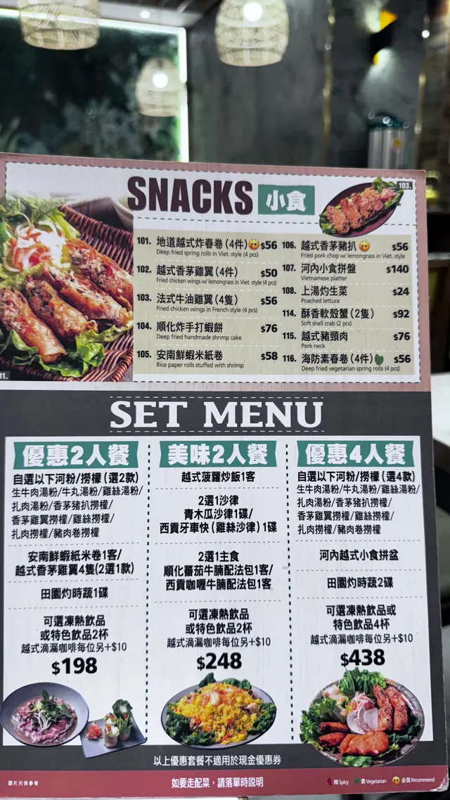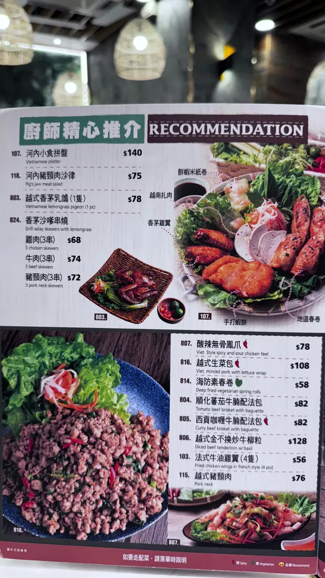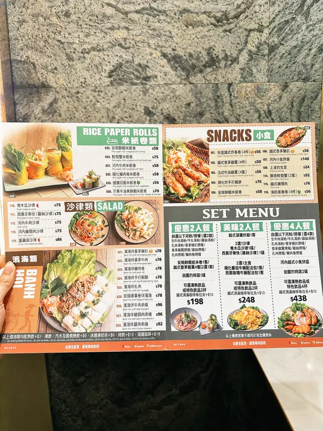 去完附近睇玩具,晚饭就决定试试这间油麻地超人气的【河内越式料理】。门口一早已经排满人,心想应该冇错啦,正嘢嚟㗎!餐厅气氛充满东南亚风情,木系装潢配上暖黄灯光,坐得相当舒服。入座后点了 美味2人餐,份量刚刚好,菜式选择丰富。SET MENU美味2人餐 $248沙律西贡牙车快(鸡丝沙律)1碟首先上台的是西贡牙车快(鸡丝沙律),清爽开胃,酸酸辣辣的鱼露香气令人食欲大开。主食西贡咖喱牛腩配法包1客之后来到重头戏西贡咖喱牛腩配法包,牛腩炆得入味柔软,咖喱香浓不呛口,用法包沾著汁撕来吃,非常满足。越式菠萝炒饭1客炒饭色香味俱全,粒粒分明的饭粒,带著越式菠萝果香,配上虾仁同腰果,酸甜开胃。追加:越式香茅猪扒加点的越式香茅猪扒也是惊喜之选,香茅味浓郁、肉汁丰富,烤得焦香脆口。可选冻热饮品或特色饮品2杯1. 椰果椰汁西米露2. 鲜芒果椰汁西米露最后当然要来个特色饮品收尾,西米露滑溜香甜,冰凉消暑。浓郁顺滑,一试难忘。味道、环境、服务都令我印象深刻,是一间值得再访的越南菜餐厅。难怪经常大排长龙,真心推荐俾钟意越式风味嘅朋友!…Read More