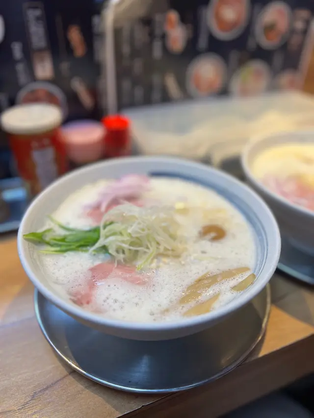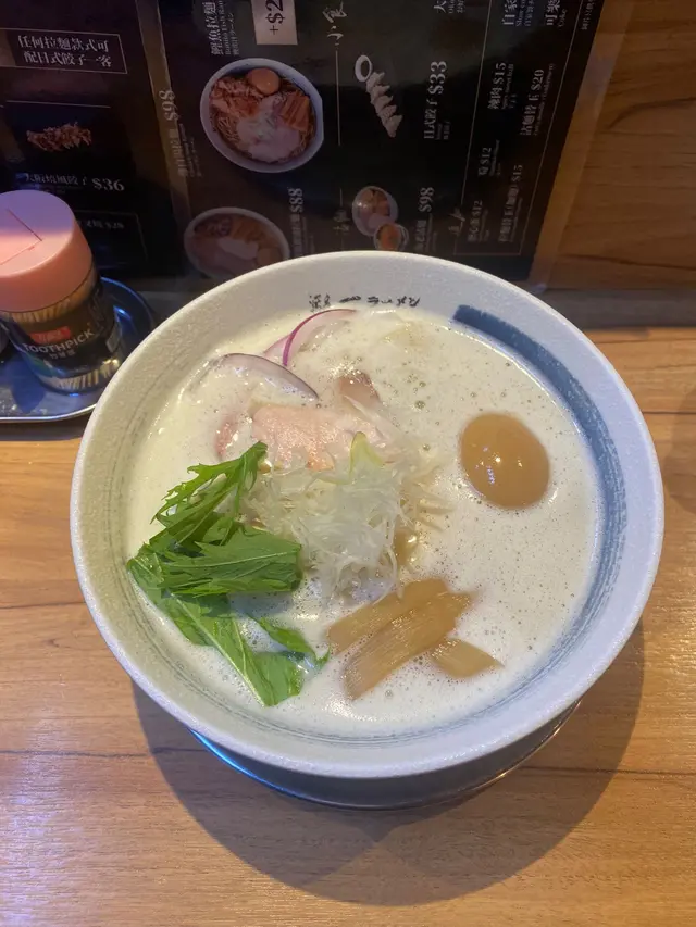 小店位置有啲隱蔽,但係絕對值得專程去試 ꒰,,꒪ ᐞ ꒪,,꒱店內氣氛似日本路邊拉麵小店,全部都係 ʙᴀʀ 枱坐位,一邊食可以望到師傅一邊煮麵,真係幾有 ғᴇᴇʟ 呢 ~○ 白 雞 湯 拉 麵 // $102湯頭呈現奶白色澤,用豬骨配雞骨雞殼長時間熬製而成,飲落好濃郁順口,雞味特別突出,完全唔會覺得油膩,仲有陣陣香濃嘅忌廉味,真係好出色 (๑´ ڡ `๑)最特別嘅係佢哋會根據不同湯底配搭唔同麵條 .ᐟ.ᐟ呢款白湯配上低加水全麥粒麵,30% 含水量,咬落去紮實有彈性,有濃郁麥香味,掛湯能力極強,完美襯托湯底嘅厚重感 ꒰ ´ ᯅ `꒱配料方面都好豐富,雞胸非常嫩滑,慢煮豚肉叉燒薄薄一片,肉質好鮮嫩。溏心蛋熟度剛剛好,咬開係完美流心狀態,濃郁醬油香完全滲晒入去。另外仲有京蔥絲、筍、木耳、蔥花等,增加爽脆口感,層次真係好豐富 ꒰ # ’ ω `# ꒱𝐓𝐈𝐏𝐒:呢間店嘅白雞湯麵令好多人慕名而來,加上店內座位唔多,所以食飯時間真係要早啲去排隊 𖤐 ˊ˗黃埔店依家暫時裝修緊,可以去試試太子分店先 ~⸜♡⸝ 心 水 拉 麵 排 名 :🏅 沾麵:黑龍 ➜ 阿久根 ➜ 一燈 ➜ 豚王 ➜ 金田家🏅 白湯:座銀 ➜ ○𝐝𝐞▽ ➜ 泓一 ➜ 野見 ➜ 一生懸麵 ➜ 金鶴 ➜ 立體派 ➜ 大叔🏅 醬油湯:多賀野 ➜ 霸嗎🙅🏻 𝑵𝒐 𝑬𝒏𝒄𝒐𝒓𝒆:富士山55 / 麵匠 / 風雲丸 / 蔦 / 鬼金棒 / 火夫ꕀ…查看更多