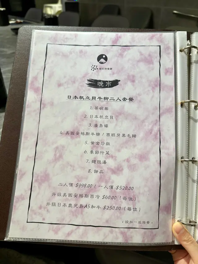 今日朋友仔同我慶祝生日話要食好d,去左屯門宜間鐵板燒,平民價但絕對高質素,日本帆立貝牛柳二人套票 ($998/2人, 另加一服務費)個茶碗蒸好滑, 個D黑松露勁多仲要勁香 而個帆立貝擺盤又靚好juicy個廣島蠔唔會過火,個鮮味仲配合埋個煙肉碎,絕,加上睇住師傅表演再食真係好享受,美國安格斯牛柳🥩,五成熟,師傅煎得好好,仲好淋身,食落牛味好出加埋蒜片食一流個飯先係高潮位,飯炒到粒粒分明好乾身之餘調味好好唔會過咸,正宗黃金炒飯係好考師傅手勢工架,再配合埋個醃菜,好滿意…查看更多