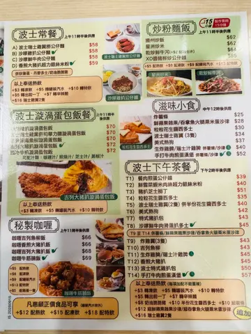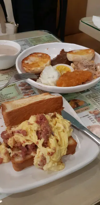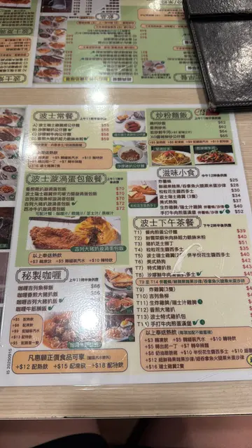 铜锣湾的波士冰室,是日常午饭的心水餐厅。好处是平靓正快近 😂😂😂。今日刚巧有朋友邀约午餐,吃得份外丰富 😋😋点了两份午餐,大件夹抵食 😂😂😂吉列特大猪扒漩涡蛋包饭,大猪扒跟蛋包饭一样多,抵食到一个点 😂😂。猪扒香脆松软,配上蛋香满满的蛋包饭,正到呢⋯😋😋😋再来一份五香肉丁公仔面,终极邪恶之选!😈😈瑞士鸡翼,甜美的瑞士汁跟嫩滑的鸡中翼,天作之合 😋😋生炸鸡髀配杂果沙律,炸髀一向是大爱,生炸更是香脆 😍😍;沙律品质亦胜预期 👍👍吉列鱼柳并吞拿鱼沙律,外层炸浆香脆,鱼肉白滑热辣辣;再配吞拿鱼,好食就系咁简单茶记热门选择 - 红豆冰,要是有雪糕就更完美 😋😋餐饮来杯冻柠乐,令人心旷神怡!…查看更多