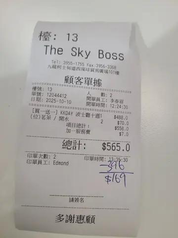 Bought a KKday buy one get one free 10周年庆典午市九道菜佳肴盛宴 at $198 per head. Need to pay $35 per head for tea and 10% service charge of original price. So altogether $282.5 per head.9-course lunch included:烟熏流心蛋: OK松露脆皮猪: piggy-like dimsum, but not much truffle flavour. 香辣避风塘烧卖: deep fried siu mai with slightly spicy flavour. Quite Aberdeen style indeed.波士极品灌汤饺: very good indeed! The dumpling wrapping was super thin! There were loads of ingredients. Soup was clear and yummy!熊猫鸡包仔: Cute! But wrapping so thick with little ingredients.大澳艇家虾酱炸鸡翼: crunchy deep-fried crust with juicy flesh. Flavour-wise it was ok but not so rich in shrimp paste.蛋白带子粒炒饭: quite a no of small scallops pieces inside but portion was incredibly little! less than even half a bowl!!!!班兰椰汁糕: OK是日精选糖水: it was 紫米露 which smelt & tasted good with quite some 紫米.Overall food quality was ok la, some above average and a few below average. Portion seemed little but I did feel full after eating. Service seemed ok as I didn't spend much time paying attention to the service. It was quiet and private enough for a great chat with my friend over lunch. Environment was nice but we got no view as we were seated away from the windows. This deal was reasonable. …查看更多