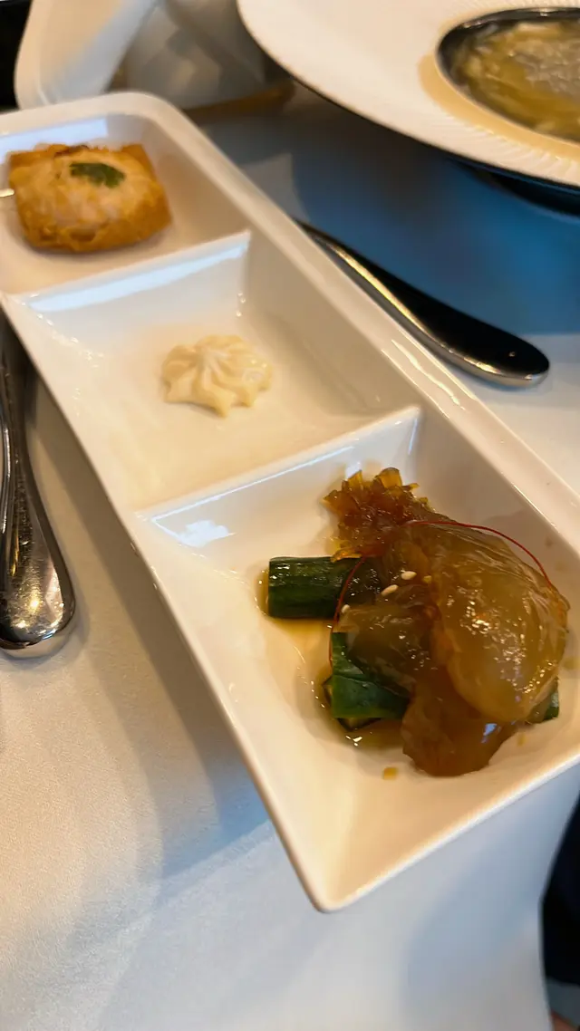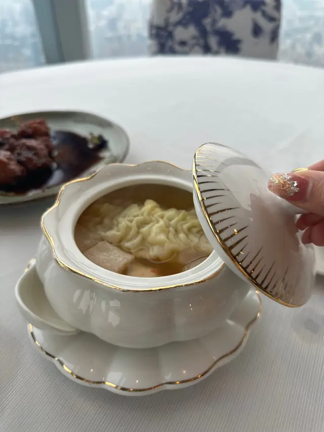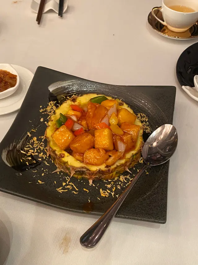 Bought a KKday buy one get one free 10周年慶典午市九道菜佳餚盛宴 at $198 per head. Need to pay $35 per head for tea and 10% service charge of original price. So altogether $282.5 per head.9-course lunch included:煙燻流心蛋: OK松露脆皮豬: piggy-like dimsum, but not much truffle flavour. 香辣避風塘燒賣: deep fried siu mai with slightly spicy flavour. Quite Aberdeen style indeed.波士極品灌湯餃: very good indeed! The dumpling wrapping was super thin! There were loads of ingredients. Soup was clear and yummy!熊貓雞包仔: Cute! But wrapping so thick with little ingredients.大澳艇家蝦醬炸雞翼: crunchy deep-fried crust with juicy flesh. Flavour-wise it was ok but not so rich in shrimp paste.蛋白帶子粒炒飯: quite a no of small scallops pieces inside but portion was incredibly little! less than even half a bowl!!!!班蘭椰汁糕: OK是日精選糖水: it was 紫米露 which smelt & tasted good with quite some 紫米.Overall food quality was ok la, some above average and a few below average. Portion seemed little but I did feel full after eating. Service seemed ok as I didn't spend much time paying attention to the service. It was quiet and private enough for a great chat with my friend over lunch. Environment was nice but we got no view as we were seated away from the windows. This deal was reasonable. …查看更多
