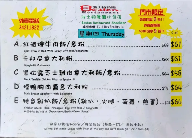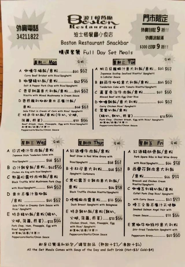 波士頓餐廳 (湾仔) 网址: https://s.openrice.com/QrLS0jG0000 地址: 香港灣仔盧押道3號地舖 电话: +852 25277646