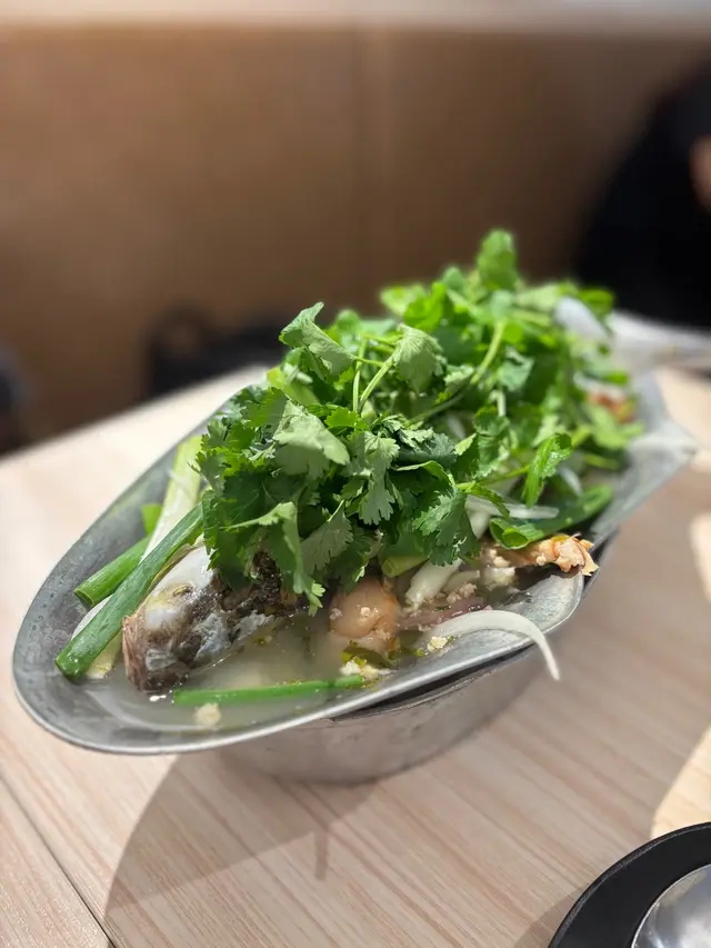 餐廳完全隱藏在村屋之中, 如果朋友不向我介紹, 加上以前住大圍才能容易找到餐廳 😆 餐廳在村屋地下, 以白杏色為主, 環境蠻清新。生蝦刺身 $178生蝦刺身每件也不小, 上面有辣椒和蒜粒, 點綴一下便好了, 不用跟刺身一起吃 😗 刺身非常新鮮爽彈, 比平時日本的蝦刺身更爽口 🤩 配上秘制甜酸醬, 泰式風味立刻顯現出來 🤗 有幸店員推介, 這款是今餐最好吃的菜餚。菠蘿雞絲炒飯 $105一般都是菠蘿海鮮, 今次試試點雞絲代替, 首先炒飯上面鋪滿肉鬆 😃 雞絲味道依然不會被覆蓋, 裡面有提子乾, 炒飯能做到粒粒效果。我與朋友已經各吃了1碗, 炒飯好似沒吃過一樣, 懷疑廚師把飯堆到滿滿 🤭泰式炒金邊粉 $95朋友很喜歡金邊粉, 所以特別期待, 可惜我跟朋友都覺得金邊粉有點未如理想 🫠 味道上微酸, 是正常的, 不過粘性稍重, 而且過於乾身。泰式椰子雞湯 $68湯品應該有6碗份多, 多到像灌水般 😅 未喝已經嗅到椰子飄香, 大概迎合香港人口味, 只有微微酸, 裡面有大量雞肉和芫荽蔥, 這也是其中1道我喜歡的菜式 😊馬拉盞炒菜苗 $78菜苗青翠鮮嫩, 但略嫌硬了點, 用馬拉盞炒香, 每條菜苗都充斥馬拉盞的惹味 😌可以說餐廳性價比超高, 菜餚份量驚人, 相信一家大細大約只需要3百多就可以了, 而味道也很不錯。…查看更多