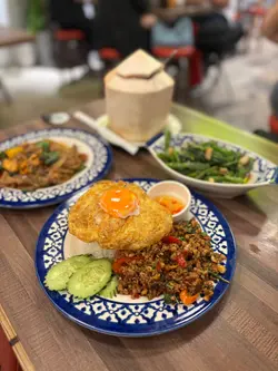 有各式各樣既泰式🇹🇭神像同街道卡通畫,幾特別既係連店員既制服都寫住Ashley 21, 係亞士厘既意思~ 野食有風味,幾有鑊氣同有油水,份量幾大又唔貴👍🏻(5 😍 係滿分,🤩係半分)泰式脆燒肉炒金邊粉 🇹🇭🐷🔥🍜 - $108 (好味指數:😍😍😍😍)味道豐富,因為落左羅望子醬、棕櫚樹糖🏝️、魚露🐟等等,所以集酸、甜、鹹於一身~ 上面鋪滿左燒肉🔥🐷,表皮香脆唔會硬,啲肉顏色粉嫩,係半肥瘦既,有鹹香同豐腴既油香🤤 亦有香口既蛋絲🥚、清新既豆腐⬜️、爽口既芽菜、香口既花生碎🥜,金邊粉軟腍,亦可以濟啲青檸汁🍋🟩落去就再refreshing啲tim~ 泰式蟹肉炒飯 🇹🇭🦀🔥🍚 - $138 (好味指數:😍😍😍😍)真係落足一梳梳蟹肉🦀去炒👍🏻 質感綿密軟糯,味道鮮美,亦落左唔少香口既蛋🥚、清新既蔥同洋蔥🧅去炒🔥,亦有泰國香料🇹🇭🌱做調味,包括香茅、南薑🫚、檸檬葉🍋🌱、魚露🐟、檸檬汁🍋等等,整體幾香口,亦都炒得夠乾身,粒粒分明~泰式蝦醬炒通菜 🇹🇭🦐🔥🥬 - $58 (好味指數:😍😍😍😍😍)有濃郁醇厚既蝦醬🦐味道,亦有蒜頭🧄、辣椒🌶️、魚露🐟、蠔油等做調味,集鮮味、鹹香同微辣🌶️於一身,惹味香口,而啲通菜🥬入晒味,顏色翠綠,亦炒得久耐唔會硬,用嚟送飯一流👍🏻泰式雜錦海鮮煎 🇹🇭🦐🦪🫓 - $128 (好味指數:😍😍😍😍🤩)呢個幾得意,係濕潤版既蠔餅🦪🫓🤩 有超多海鮮,包括有爽口既蝦🦐、彈牙既魷魚🦑、鮮甜嫩滑既蠔仔🦪,帶有豐富既海鮮鮮味,配埋足料既蛋🥚,香口惹味,亦可以點酸甜辣醬🌶️食就更加開胃🤤西瓜沙冰 🍉🍧 - $48 (好味指數:😍😍😍😍🤩)好大杯🤩 有天然既西瓜🍉香味,味道清甜解渴又可以清熱,質感軟滑,上面仲有西瓜球🍉可以食tim😜椰奶沙冰 🥥🍧 - $68 (好味指數:😍😍😍😍🤩)呢個仲大杯😂 有芳香馥郁既椰子🥥香味,味道清新香甜,消暑解渴,質感軟滑,上面仲有煙韌清新幾椰子肉🥥可以食ga好味指數:😍😍😍😍🤩推介指數:😍😍😍😍🤩…查看更多