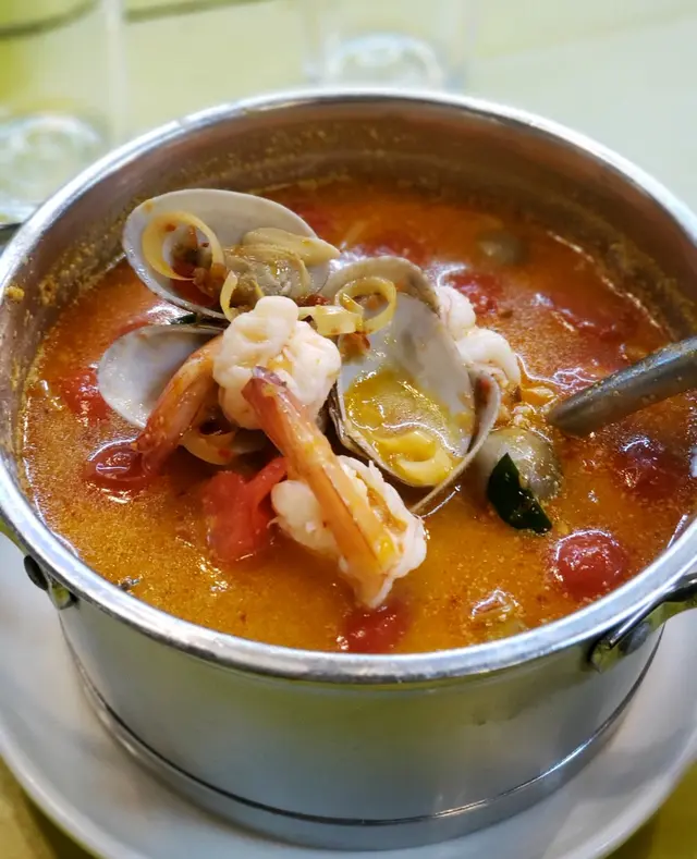 那天閒日晚上,我跟朋友都想食番餐晚飯飲番杯,便一起前往位於屯門新墟村的泰味村新恆福餐廳菜館。在那裡遇上員工的熱心推介,便希望能品嚐其中的特色小菜佳餚餐。首先,我們叫了一碟自製式鹽鮮馬友。它主要是以一些已切碎塊的魚肉配以鹽鮮調製及蔥菜粒一起蒸熟,因此吃落口除了有嫩滑魚肉質外,亦有啖啖咸咸蔥菜的味感,也是一種在沒有蒸魚豉油下的另類海鮮特色。然後,我們再叫了一套泰式焗蜆肉餐。它乃是以四塊切的已烤熨的小四多士方飽,並配以一鍋中七小瓦杯(如相片)的滾熱辣的焗碎蜆肉,而它們主要是以蒜蓉醬料來一起烤焗,因此將那些熱辣碎蜆肉醬弄出來,並塗搽在方飽面上作醬料連方飽一起吃,便彷如吃市面上那些蒜蓉麵包般的可口美味。…查看更多
