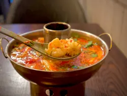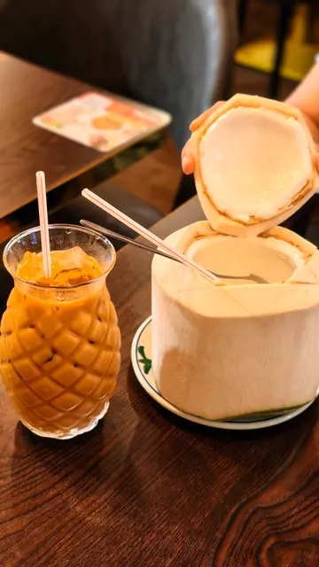 今次再次来到坑口村揾食,拣咗一间装修充满泰国风味的小厨餐厅。墙身排满了泰国牌子的梳打水与啤酒樽,餐厅环境灯光暗暗、气氛悠闲。🍾🍹👫🍽️🇹🇭泰式奶茶($20),茶味和甜味都调校得很好,茶底香浓,冷面浓郁,甜香顺滑。🧋🇹🇭✨ 泰式串烧半打($98),打头阵就是充满炭香的串烧,猪、牛、鸡各两串,均以泰式香料腌制后炭烤,外焦内嫩,配上混合了花生的沙嗲酱,香气扑鼻,很有滋味。🍢🐷🐃🐥✨ 咖喱软壳火山包($188),大大个的包包围住金黄鲜香酥脆的软壳蟹,再淋满了泰式咖喱酱,型造犹豫山火爆发的景象,面包烘至香脆暖暖,切开后,咖喱汁汩汩流出,微微香辣中带点椰香,咖喱汁的份量足以填满整个包,简直是罪恶享受。🍛🥙🦀✨ 海鲜冬荫功汤($89),汤底饮得出浓浓的香茅、南姜等香料,加入虾仁、鱿鱼、青口、蘑菇一起熬煮,酸辣平衡得刚刚好,到喉时也会感受到辣辣的惹味。最欣赏是餐厅会用上一个小炉,汤入口时都会感受到暖意窝心。虽然选了细汤的份量,但是每人都可以喝到两碗。✨ 芒果糯米饭($55),有别于传统的糯米饭,这款食起上来带有阵阵斑斓的清香,淋上浓郁椰奶,口感软糯香甜,旁边的新鲜芒果片,甜香多汁。🌿🍚🥭…查看更多