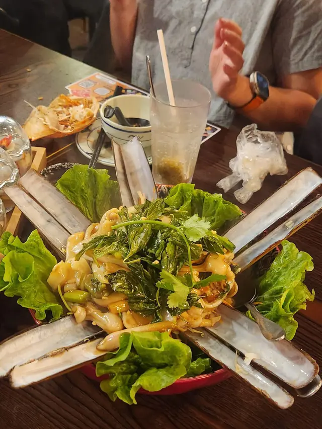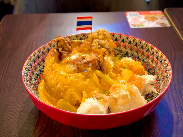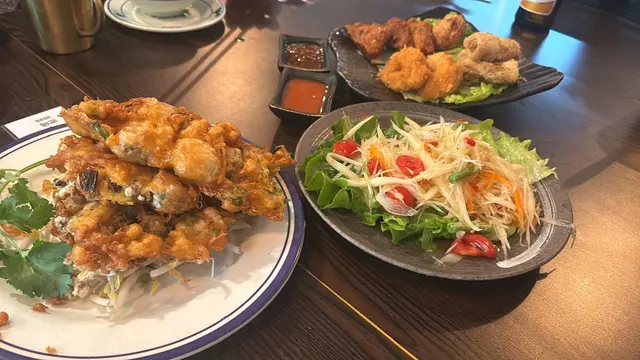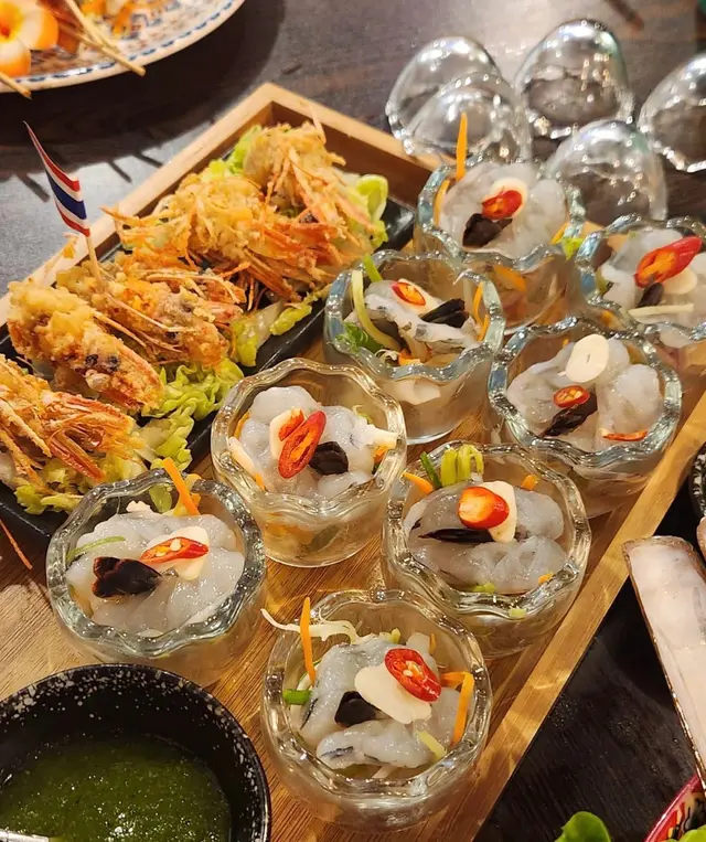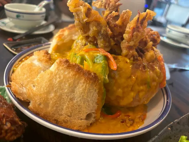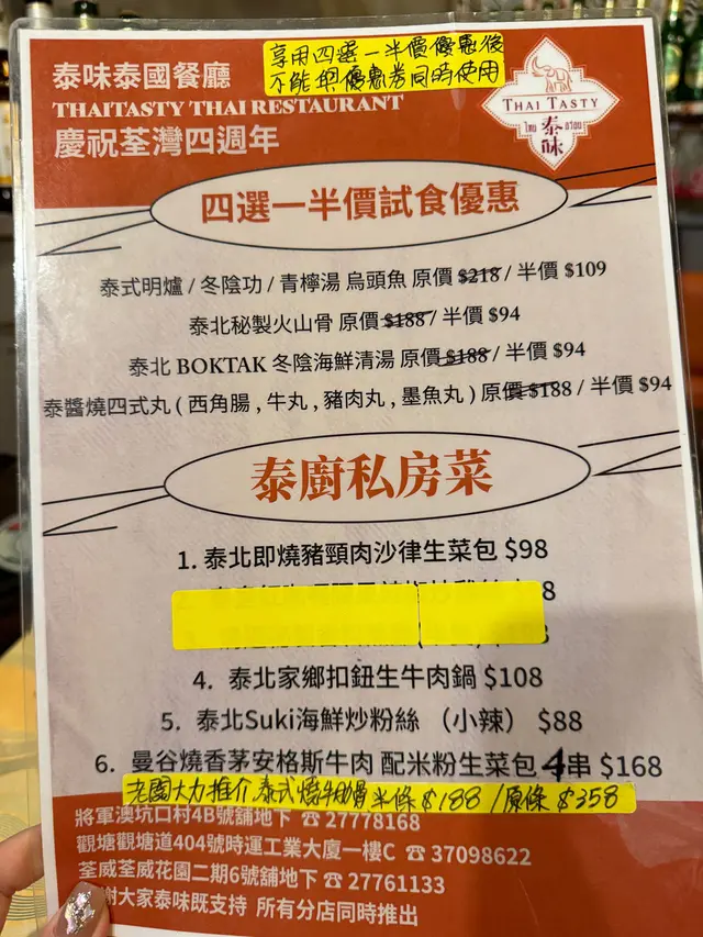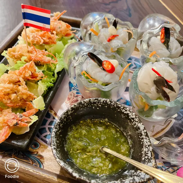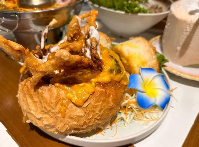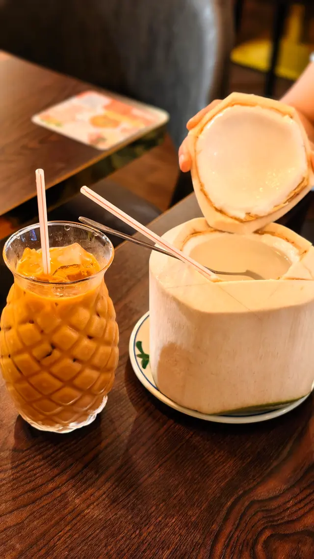 今次再次來到坑口村搵食,揀咗一間裝修充滿泰國風味的小廚餐廳。牆身排滿了泰國牌子的梳打水與啤酒樽,餐廳環境燈光暗暗、氣氛悠閒。🍾🍹👫🍽️🇹🇭泰式奶茶($20),茶味和甜味都調校得很好,茶底香濃,冷麵濃郁,甜香順滑。🧋🇹🇭✨ 泰式串燒半打($98),打頭陣就是充滿炭香的串燒,豬、牛、雞各兩串,均以泰式香料醃製後炭烤,外焦內嫩,配上混合了花生的沙嗲醬,香氣撲鼻,很有滋味。🍢🐷🐃🐥✨ 咖喱軟殼火山包($188),大大個的包包圍住金黃鮮香酥脆的軟殼蟹,再淋滿了泰式咖喱醬,型造猶豫山火爆發的景象,麵包烘至香脆暖暖,切開後,咖喱汁汩汩流出,微微香辣中帶點椰香,咖喱汁的份量足以填滿整個包,簡直是罪惡享受。🍛🥙🦀✨ 海鲜冬蔭功湯($89),湯底飲得出濃濃的香茅、南薑等香料,加入蝦仁、魷魚、青口、蘑菇一起熬煮,酸辣平衡得剛剛好,到喉時也會感受到辣辣的惹味。最欣賞是餐廳會用上一個小爐,湯入口時都會感受到暖意窩心。雖然選了細湯的份量,但是每人都可以喝到兩碗。✨ 芒果糯米飯($55),有別於傳統的糯米飯,這款食起上來帶有陣陣斑斕的清香,淋上濃郁椰奶,口感軟糯香甜,旁邊的新鮮芒果片,甜香多汁。🌿🍚🥭…查看更多
