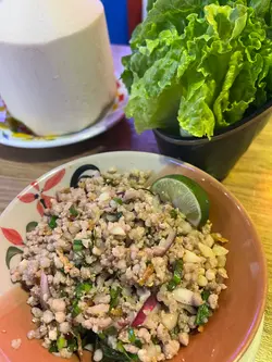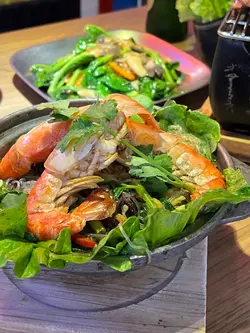 大角咀好多嘢食一路都知但系一路都唔知从何入手今日有大角咀地胆介绍咗呢一间泰国菜叫埋朋友一齐食过就发现果然冇介绍错入到去已经觉得装修好有特色好啱同friend一齐食嘢饮嘢吹水有几个卡位系笃笃车咁嘅设计连Menu都有笃笃车嘅相 椰香鲜虾柚子沙律鲜虾唔系啲平时啲急冻透明虾 值得一赞底下有好多一瓣瓣嘅柚子 唔系碎晒好容易夹到 大大啖柚子肉 yum.泰式猪肉碎生菜包正常发挥小食份量够我地几条友share.炭烧猪颈肉 猪颈肉系个小火炉上keep到唔会摊冻晒 烧得都几香口 厚薄适中.粉丝大虾煲 我哋称之为是日重点 粉丝炒得干身味道刚刚好 唔会过咸 有阵阵嘅胡椒辣味超惹味 配啤酒啱啱好.蒜香椰菜苗 其他𩠌已经咸所以叫咗蒜蓉炒菜 清清地 补充纤维芒果糯米饭 食泰国嘢几饱都好都系要食返个暖笠笠芒果糯米饭作结圆满结束✔️椰青食完辣嘢未必想再饮有椰奶嘅嘢所以我自己今次嗌咗个冰冻椰青椰青清甜超清爽.总括嚟讲嘢食高质价钱亲民绝对会再过嚟食饭见到佢仲有啲到会menu下次去人哋屋企嗌到会又多个选择…Read More