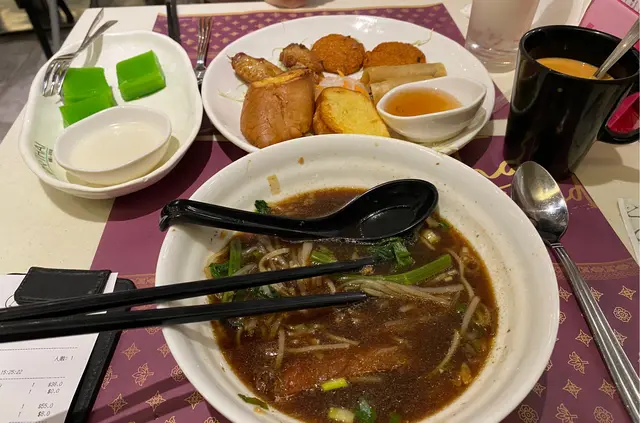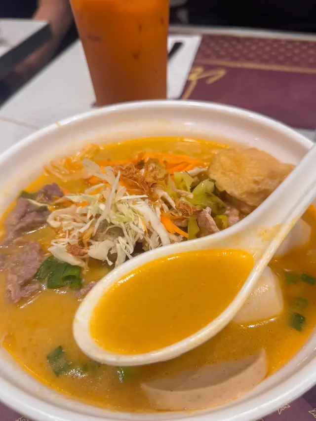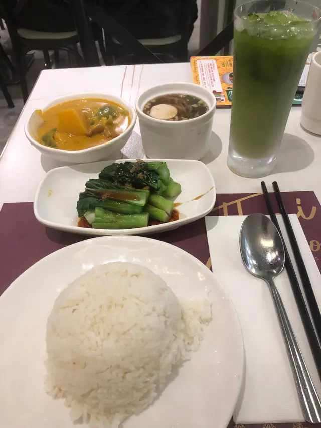 因為要來杏花新城買波鞋,所以順便在這裡吃午餐。選了 泰國人海南雞飯 主要是因為看到午市套餐不收加一服務費。對比其他餐廳,這間的人流明顯比較多,不過都不用等位就可以入座。唯一要注意就是有機會要和別人搭枱。泰式船仔湯金邊粉 (HKD 58) 加錢 (HKD 5) 轉了喇沙湯底。說是喇沙湯底,但吃落更像是冬蔭功,懷疑時給錯。吃起來是酸酸辣辣的味道,辣度偏重一點,搭配金邊粉吃很順口。配料有魚蛋、豆腐卜、牛肉片、芽菜等等,都幾豐富。泰式海南湯飯 (HKD 64) 海南雞配油飯是經典配搭,但配湯飯還真是比較少見。雞肉很嫩滑,不過雞皮就比較肥,份量來說都頗飽。凍飲不用加錢之外,還可以喝到 泰式奶茶 & 泰式鴛鴦。後者加了抹茶,喝起來會有點微苦澀。…查看更多