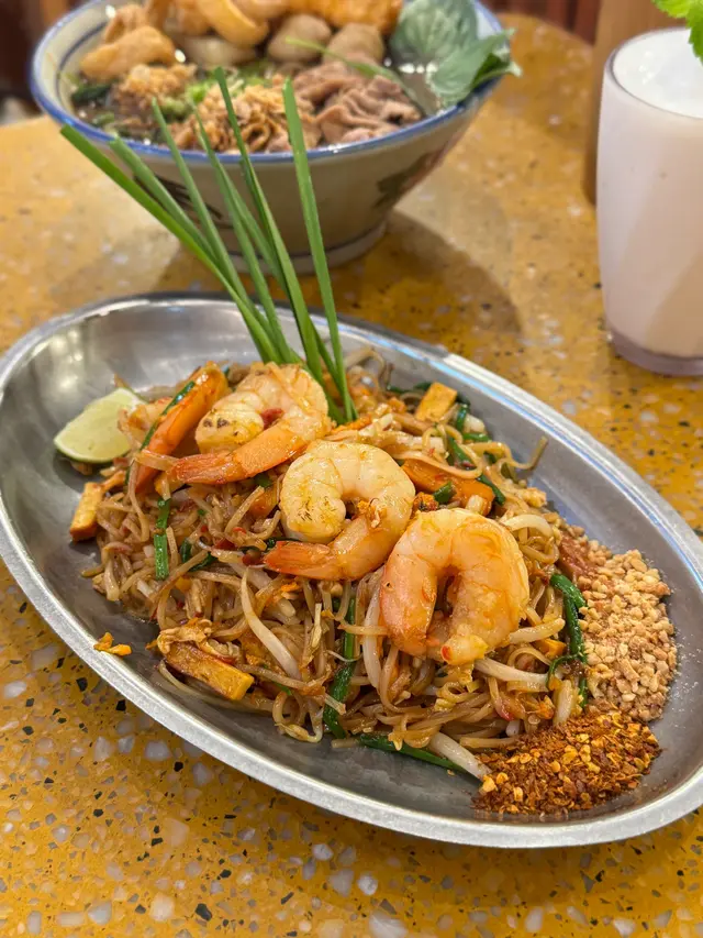 【屯門Vcity高質泰國菜🇹🇭GrandmaThai】-今日要同大家介紹呢間係屯門Vcity非常高質嘅泰國餐廳『🇹🇭GrandmaThai』😳佢係少有係大商場食到好味正宗嘅泰國菜!地址仲好方便屯門站一出去就係😝推薦❤️🔥-😋鳳尾蝦炒金邊粉🍤$88+1點樣為之一碗好食嘅Pad Thai😁就係要酸中帶甜🌶️再有辣椒片嘅香辣😙呢碟就做到啦!加埋青檸🍋🟩同花生碎🥜味道更加豐富~仲未讚完🥹佢啲嘅仲好大隻彈牙🦐must encore!好味指數:🌕🌕🌕🌕🌗-😋泰式船湯河🍜$78+1唔講唔知正宗啲泰船河個湯之所以咁深色係因為摻入了豬或牛血,飲落鮮濃帶甜🤣雖然唔知呢碗有冇落到🩸🩸但個湯係真心好飲嘅👍🏻仲可以自己加調味料🧂船麵入面有牛肉片、肉丸、炸豬皮條、芽菜同埋通菜🥰食落都唔錯😌好味指數:🌕🌕🌕🌕🌗-😋泰式燒鮮魷魚🦑$98+1魷魚烤過後香味十足🤩小編好鍾意佢將魷魚筒切到細細塊🙂↕️食落更加Q彈😏點埋個酸辣醬就更過癮!好味指數:🌕🌕🌕🌕🌘-😋泰式菠蘿刨冰及椰子刨冰🥥$38杯+1呢兩杯味道還好😗但夏天飲就好消暑啦🔥🔥好味指數:🌕🌕🌕🌕🌑-📍泰國婆 屯門:鄉事會路83號V City 1樓L1-2B號舖將軍澳:坑口重華路8號東港城2樓238號舖💸人均消費:$190…查看更多
