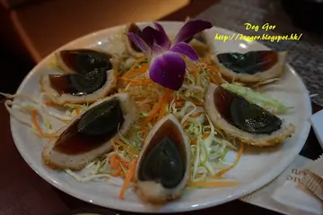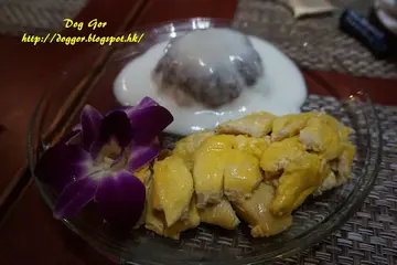 从好友口中得知, 这间泰式餐厅有几道以榴梿入馔的菜式 ~此话一出, 我们几条榴莲痴汉, 立即相约前来品尝 ~ Menu ~ 薄荷榴莲特饮 喝一口顿感薄荷的威力, 冰极透心凉, 味道是浓厚丰郁, 沙冰搞得均匀绵滑, 每一口的榴梿余韵久久不散 ~ 椰汁鸡汤椰汁香气四溢, 味道酸辣之余亦带了一点清幽, 汤的材料丰富, 每喝一口都了充满了香茅和椰汁香味, 鸡件厚肉入味, 十分好喝 ~泰式炸虾丸皮蛋是虾胶肉包著皮蛋炸的, 外在的虾肉弹牙爽口, 皮蛋没有涩味, 皮蛋黄结晶有胶质感, 风味独特, 好吃 ~榴梿炒饭饭炒得均匀, 饭粒Q韧有弹性, 虾球爽弹, 而最精妙之处是 每一口都有榴梿独有的幽香清甜的味道, 整个饭香口又开胃, 无与伦比的味道叫人感动 ~芭堤雅芝士焗大头虾 大头虾够大件又厚肉, 焗得火候适中, 虾膏的味很甘香, 虾肉爽口又弹牙, 与芝士的比例十分平均, 风味极致 ~榴梿糕质感滑溜, 甜度适中, 榴梿味道浓郁芳香, 每人吃一件 .... 实在是不够喉 ~ 榴梿糯米饭糯米饭Q韧软糯, 配上新鲜的榴梿, 味道是意想不到的美味, 真是神仙也站不稳 ~ 本篇完 ~…查看更多
