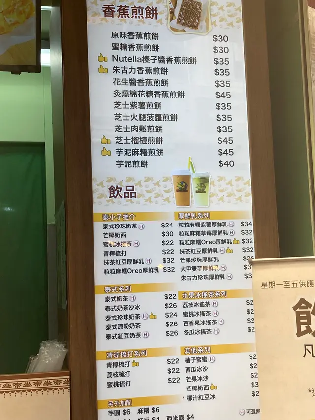 泰小子💚Nutella榛子醬香蕉煎餅 $35泰式珍珠奶茶 $24(買滿$50 送荔枝冰搖茶🤤🤤🤤)人均消費: $29.5 (2人)-Nutella榛子醬香蕉煎餅🥞啲餡香蕉夠多🍌醬都係塗滿晒個煎餅表面嘅🤤上面仲有層薄薄嘅煉奶即叫即整 熱辣辣😋就算唔小心過咗15分鐘佢都係暖 唔會話凍🥰抵食🤤🐹:可以再jit多啲煉奶·泰式珍珠奶茶🧋佢真係好泰式奶茶feel💁🏽♀️(好似講緊廢話添🤣)珍珠唔夠彈牙好夠奶味 好夠茶味🤤整體係好飲😋·荔枝冰搖茶🍹呢個係買滿$50送嘅有荔枝嘅甜🤤後勁嘅茶味好足消暑良品☀️👍🏽-28/6/2022 ate & drank 嘢食係拎去Gogo mall食🙈好彩趕得切佢哋嘅last day😚不過可惜趕唔切 快啲出食評叫大家幫襯下🥺Last day嗰日 佢都冇晒甜品得返香蕉煎餅同幾款飲品經過今次之後知道有咩想幫襯嘅小店 要盡早幫襯!唔係嘅話 隨時冇機會㗎啦🥺-好味程度:🌕🌕🌕🌕🌑抵食程度:🌕🌕🌕🌕🌑環境靚靚:🌕🌕🌕🌑🌑服務態度:🌕🌕🌕🌑🌑會回頭率:🌕🌕🌕🌑🌑 (但冇得回頭啦🥺)·#od屯門覓食之旅 #od食泰國嘢·希望疫情快啲完結啦💛大家都要身體健康💛…查看更多