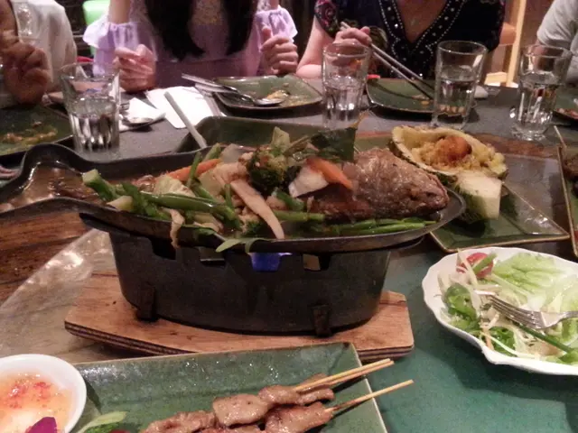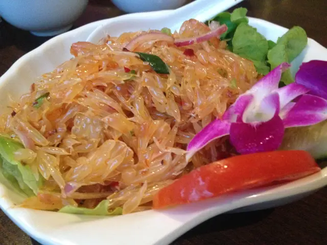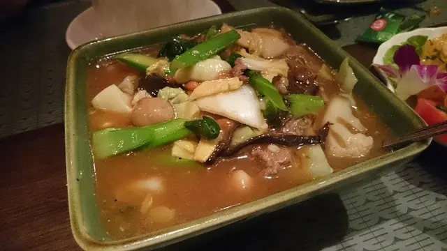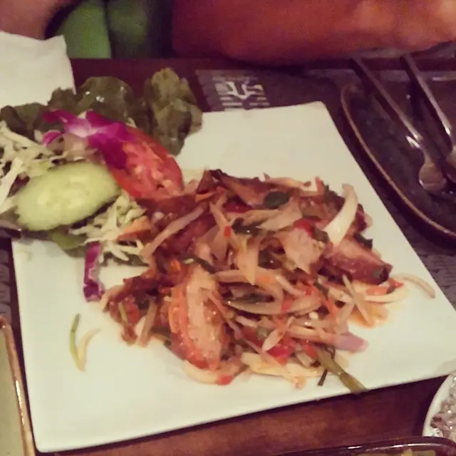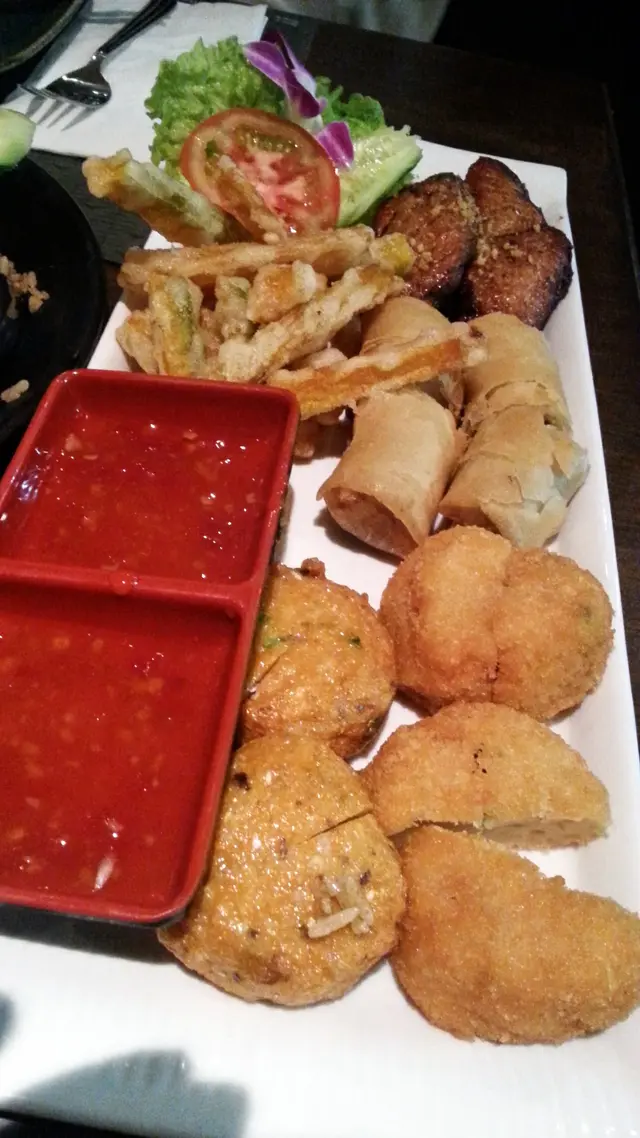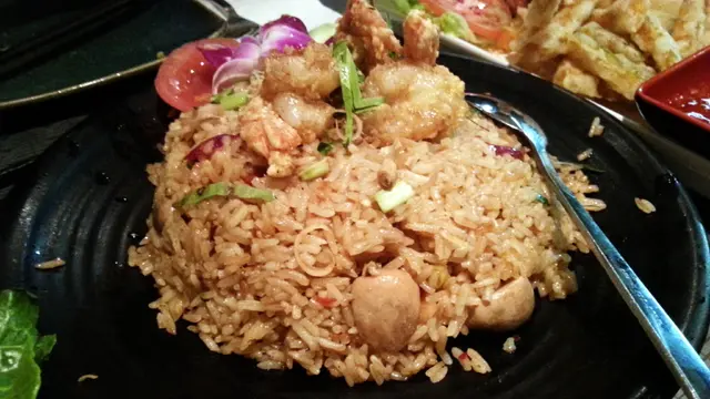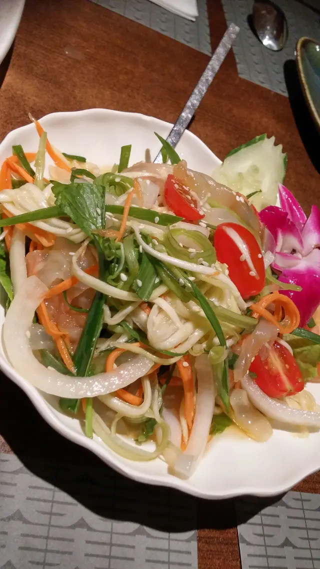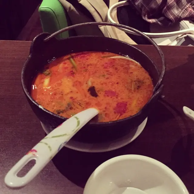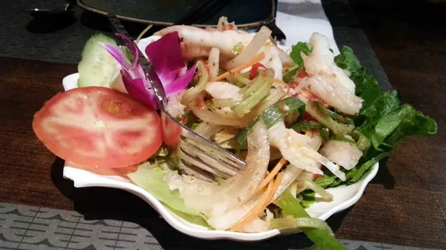 兩個人叫咁多好似好大食吖可?冇辦法啦八點啦餓死我地。呢度要花時間嘅係等,我地walkin等都唔洗等好味,不過唔食得辣上面d配菜千中祈唔好試,個sauce都唔好沾咁多,不過唔沾唔得,因為就咁食好寡,sauce係食泰式海南雞果種酸酸辣辣嘅味道泰式鳳爪係我倆摯愛,可惜唔夠入味,味道就係沾蝦果隻,呢碟好嘅地 方係配菜有香芹,耶雜錦小食(細)中蝦餅唔錯彈牙,魚餅係我一向唔好嘅但呢度我食左,最吸引係南瓜條,好甜好香,春卷味邊好怪,雞翼醃都唔醃就咁炸,落鹽都好吖!失望!!東陰功海鮮炒飯,好少見幾得意所以叫黎試下,其實整得幾好食,最衰好似九層塔味,我最憎呢陣味,唔知可唔可以叫佢走九層塔呢?好食又唔係特別好食,都唔差囉,環境好嘈因為好多人,服務態度可以,試得過…查看更多