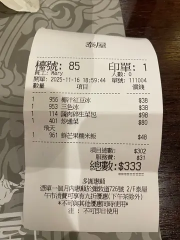 旺角泰屋|$298扫街式泰菜!生虾冰镇级鲜甜 vs 蚝饼油腻陷阱生虾椰子雪糕逆天高质,蚝饼油腻似喝油,环境挤逼但价钱扳回一城——$300买到曼谷街头七成灵魂!🦐 生虾刺身($138/10只)|冰镇火山· 虾身排列似花瓣,虾头竖立喷干冰,底下藏食用花冰床· 鲜度解剖:肉身透亮带黏稠感,轻蘸泰式辣汁(蒜片+鱼露+指天椒),甜辣交织如舌头按摩 价钱对比:比九龙城名店平$30,但虾尺寸小1/4🥥 椰子雪糕($48)|解辣神器✅ 原个椰青装满手挖雪糕,混鲜椰肉+花生碎+糯米饭✅ 温度执著:-18°C急冻却保持绵密,零冰渣感性价比暴击:坊间类似版卖$68,呢度偷饭盒价钱🥬 辣肉碎生菜包($88)|自己动手快乐· 肉碎炒到干身不油,九层塔香攻鼻,辣度可选(小辣都喷火)· 生菜新鲜如摘,每块巴掌大,包肉不破 隐藏食法:加$20追加凤梨粒,甜酸切断油腻🦪 泰式蚝饼($98)|油腻黑洞① 粉浆厚过西饼,蚝仔藏底仅5-6粒(疑似地瓜粉超标)② 油温失控:夹起滴油成河,纸吸油3张才敢入口③ 配酱救赎:是拉差辣酱+酸柑汁勉强挽回10分🐟 黄咖哩鱼($158)|稳阵之选· 用马友鱼块非雪藏鱼柳,肉不散有咬口· 咖哩胆椰香浓郁,捞饭可清碗(附赠白饭$15) 惊喜位:加入泰国茄子和金边粉,吸汁力爆灯🏙️ 环境解构|旺角挤逼美学· 台距不足30cm,隔篱台倾分手都听得到· 装修玩夜市风:挂满霓虹灯牌+胶篮椅(打卡呃Like,坐得辛苦) 冷气评分:勉强压住泰辣热气(但食蚝饼会爆汗)…查看更多