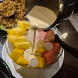 干炒泰国金边粉金边粉炒得恰到好处,口感滑顺。搭配的肉类和蔬菜增添了多层次的口感,让每一口都充满惊喜。是一道色香味俱全的佳肴,适合喜欢泰国风味的食客。青柠梳打青柠的酸味恰到好处,带来清新的口感。整体味道不会过于甜腻,十分适合消暑。鲜芒果糯米饭糯米饭蒸得恰到好处,口感柔软而富有弹性,令人愉悦。芒果片切得均匀,果肉鲜嫩,甜度适中,为整道甜品增添了清新的风味。椰浆的香气浓郁,与糯米饭的甜味相结合,让整体味道更加丰富。查看更多