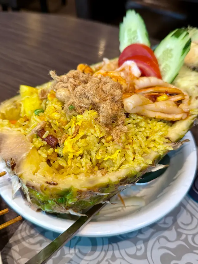 朋友就快要去欧游了,出发前一周我们就见了三次面。这次陪她来旺角吃泰国菜。餐厅还没到7点,就已经几乎坐满了人,十分热闹。 🍽 泰式虾酱炒鲜鱿一端上桌,浓郁的虾酱香气就扑鼻而来!鱿鱼吃起来爽口弹牙,十分惹味,是朋友的挚爱。 🥗 腌肉碎生菜包肉碎比想像中辣,酸酸辣辣的,吃起来很过瘾。 🥭🦀 香芒蟹肉炒饭芒果很鲜甜,一点也不酸。炒饭口感偏软,适合喜欢吃软饭的人。饭里拌著蛋丝和蟹肉,甘甜清香,让人一口接一口停不下来。 🥥 泰国椰青吃泰国菜必点的饮品,清甜又爽口。 🧋 冻泰式奶茶茶味浓郁,甜度刚好,不会太甜。查看更多