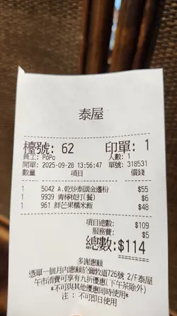 ⭐今晚再次回访《泰屋》 差唔多一年冇嚟 今次觉得啲嘢好食咗 座位阔落咗 坐得舒服咗 味道正宗泰菜马上八点 唔使等位 我哋张枱都几阔落 坐得舒服 ⭐腌肉碎生菜包 系我朋友至爱 一定要点嘅 咸咸香香嘅猪肉 包上新鲜嘅生菜 感觉清新开胃 ⭐炭烧猪颈肉 上次食过都觉得ok 今日嚟食 份量都好够 啖啖肉好满足 好爽口⭐清迈铁板蚝仔蛋 听落好特别 似系潮式嘅蚝饼 超多嘅蚝肉 煎蛋🍳 好香 啲蚝大大粒 口感棉滑 配大量芽菜 ⭐辣椒膏炒青口 用热辣辣嘅铁碟上菜 好多配料炒 例如 金不换 洋葱 秀珍菇等等 青口好大粒🦪 煮得好入味 系我私心推介⭐鲜杂果黑珍珠凉粉 估唔到喺呢度都食到高质素嘅甜品 水果好甜 好新鲜 夏天食好降火 凉快觉得呢度啲嘢食 水准高咗价钱公道 地点超方便呀喺地铁站隔离 等我唔使走特登走入九龙城食泰国菜⭐查看更多