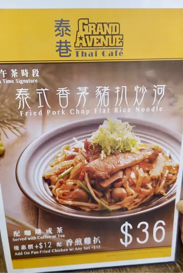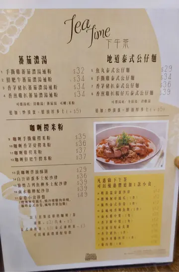 平时都几钟意食泰国菜🇹🇭呢度嘅下午茶餐又足料又抵食所以weekend都好钟意黎叹返个3点3🤤.🌟泰式香茅猪扒炒河 ($36)猪扒煎得好香 而且又够腍炒河亦都炒得啱啱好够干身配埋芽菜、韭菜等等嘅调味料真系好惹味 🤓.🌟香茅猪扒蕃茄浓汤通粉 ($34)(追加 炒滑蛋&鲜油厚多士 +$5)猪扒同上面个道菜嘅猪扒大同少异蕃茄汤好够味 超浓郁🍅而炒滑蛋份量都几多 成个组合好似早餐咁🤣.呢度下午茶餐仲会跟一杯餐饮通常我都会饮奶茶 钟意佢茶同奶嘅比例好只系30几蚊就有呢个下午茶真系好抵食😋