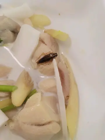 Deliveroo外卖,我叫左椰汁鸡汤,猪颈肉煎蛋饭,鸡肉炒河粉,香叶包鸡,飞天通菜。非常不幸,其中椰汁鸡汤饮到底先见到原只曱甴仔,非常呕心!!!望住只曱甴,睇住佢啲脚,望住啲脚毛,我全家心理阴影面积已不懂计算!!!冷静情绪过后立即打电话去餐厅反映,接听之职员听到后表现非常平静,感觉似系非常常见,见惯不怪,亦看似非常纯熟地表示下次黎我地餐厅送返个同等价值既汤比我,亦不慌不忙地说“记得30日内㖞“,最后请大家如光顾此店时小心睇清楚食物!我已报食环,希望帮到呢间餐厅注重卫生。