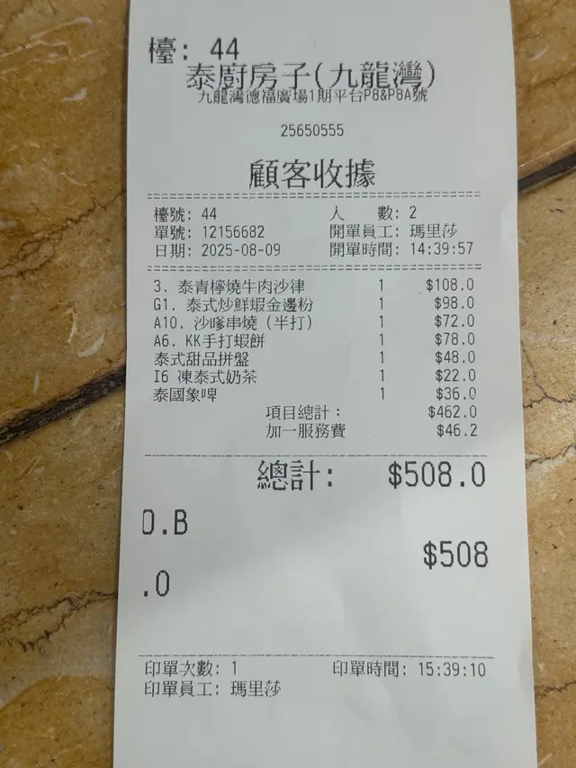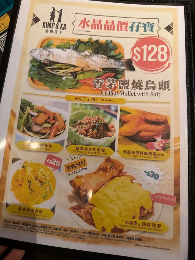 九龙湾🚇呢间「泰厨房子」🍴系区内十分之俱人气嘅泰菜馆🇹🇭,佢嘅装修走简约工业风🏭,红砖同埋水泥墙面再加上大面积嘅壁画,😎感觉都几型格。佢哋嘅泰式奶茶☺️,杯身用玻璃瓶盛载,奶茶味道香浓带🤏少少独特烟熏木质香,甜度适中,饮落好顺滑😋。椰乳雪糕红豆冰系店内热卖🍹饮品,椰奶香浓加上煮到起沙嘅红豆🫘,十分之香甜,顶部仲有幼滑嘅雪糕球🍨,夏天饮特别爽。前菜我哋拣咗🇹🇭经典肉碎生菜包,肉碎以猪肉🥩配香菜、柠檬叶等炒香,包入爽脆生菜叶🥬,入口清新带微酸微辣,口感层次好丰富🤤。沙嗲串烧🍢系佢哋自家腌制嘅,鸡肉🍗嫩滑带黄姜香,牛肉都几嫩🥩,牛味都几浓郁,沾上带微辣花生香嘅🌶️沙爹酱,真系劲啱我口味。主菜香茅盐烧乌头🐟,原条盐烧分量十足,经香茅🌿同海盐简单调味后烤焗,鱼肉鲜甜多汁又嫩滑😋,鱼肚入边仲塞满香茅,风味十足👏。泰式炒鲜虾金边粉🍝卖相超靓,佢哋用蛋浆🥚做咗个罩盖住金边粉上枱劲吸睛,金边粉吸满🇹🇭泰式酸辣酱汁,鲜虾爽口弹牙🍤,微辣酸甜滋味恰到好处好好味。最后泰式甜品拼盘🍮,包括椰汁🥥千层糕、椰汁西米糕同玫瑰花🌹千层糕,各两件。椰汁千层糕🍰层层分明带椰香🥥,Q弹软糯。椰汁西米糕🍮椰香十足🥥,玫瑰花千层糕玫瑰味清新回甘🌹,甜度轻盈唔会腻。…查看更多