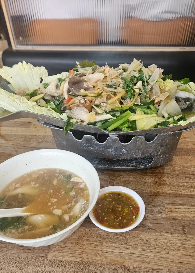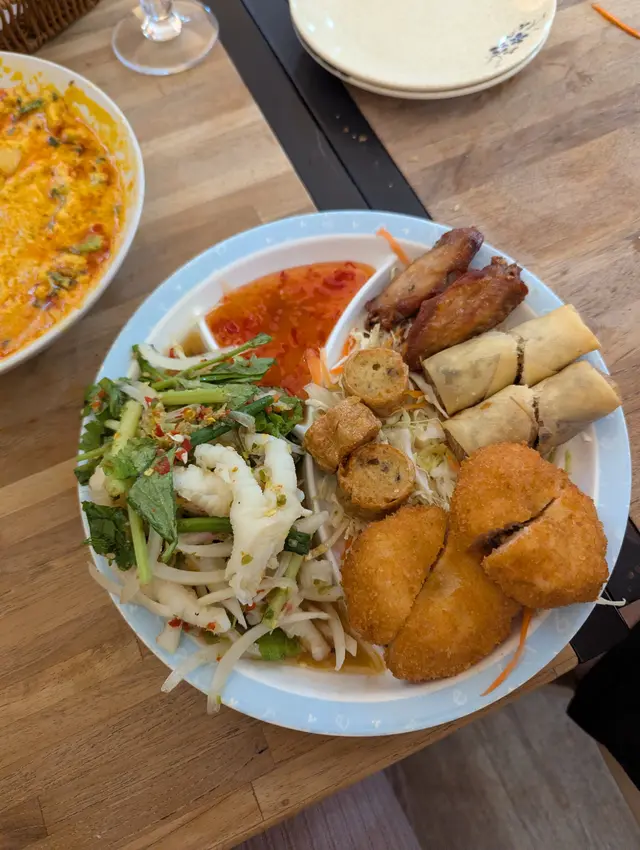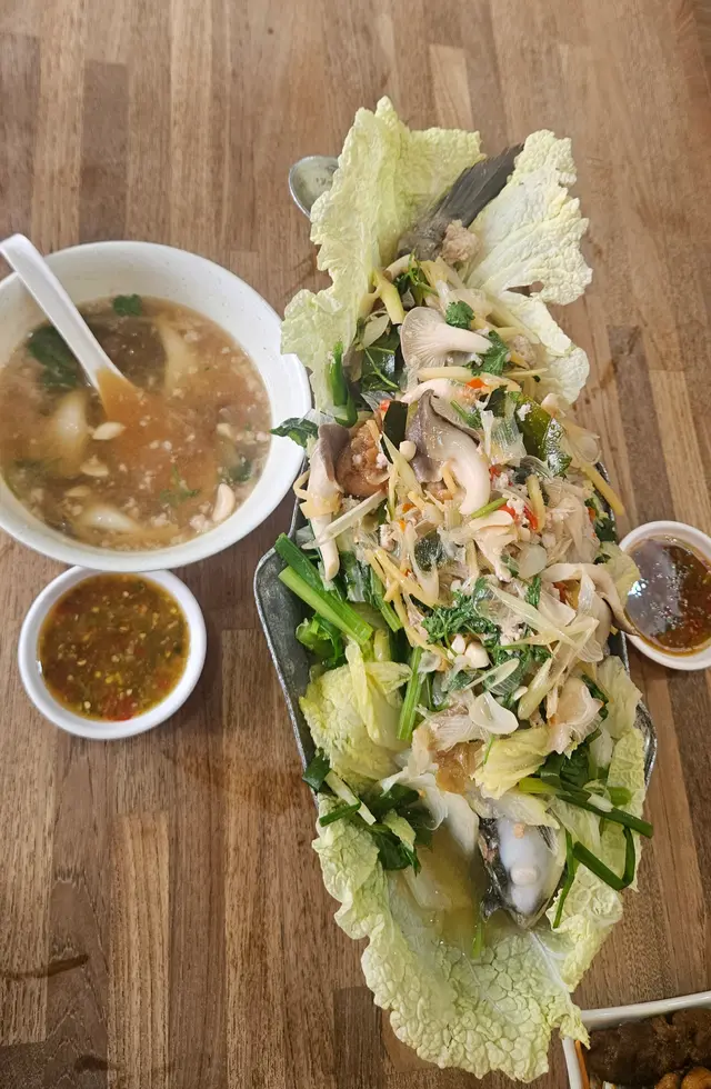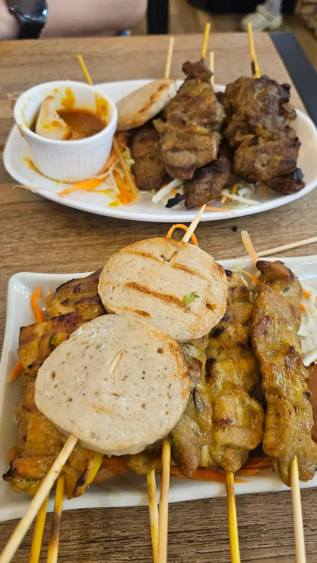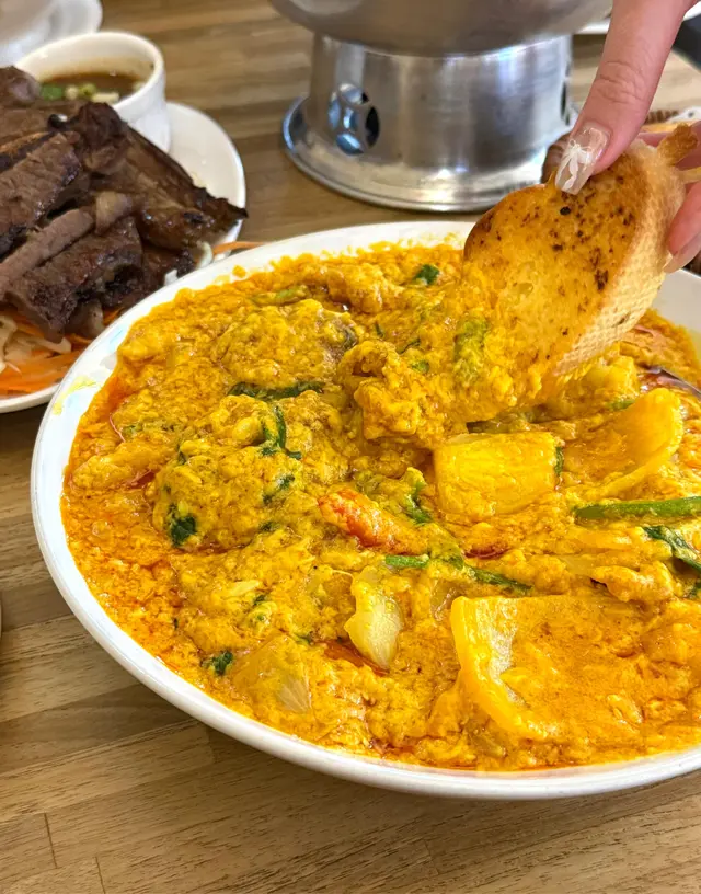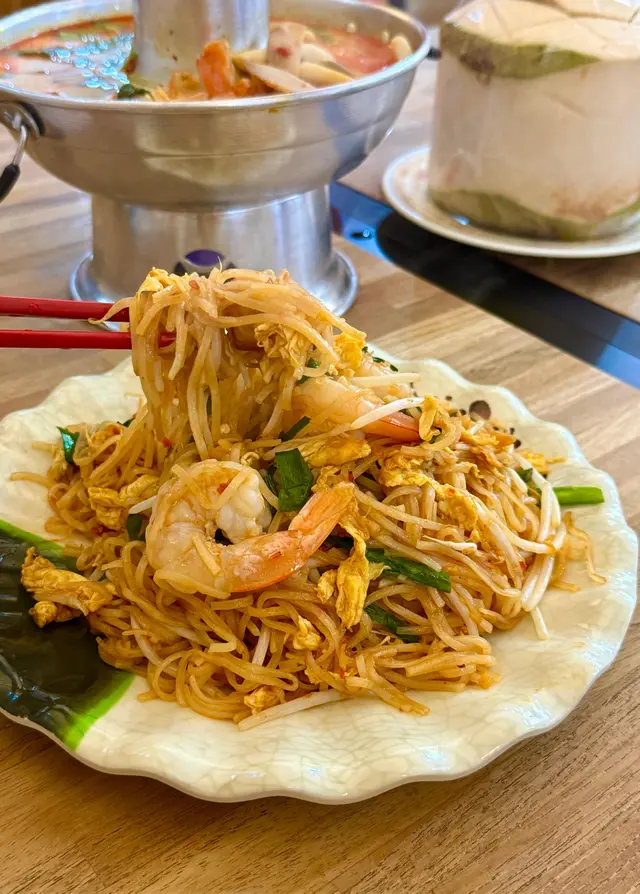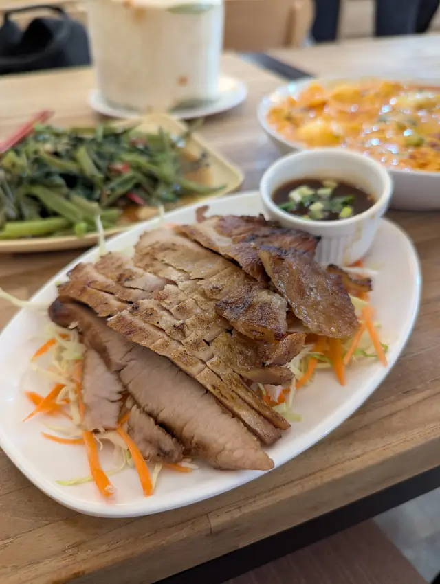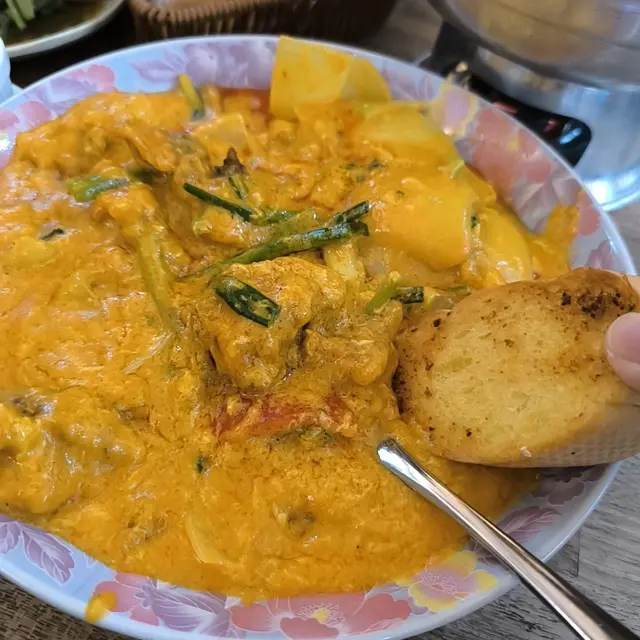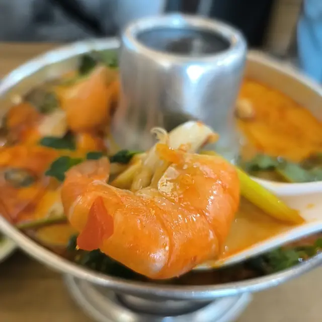唔講唔知,舊舖因為市區重建,靜雞雞搬咗去福佬村道三個月~新舖真係光猛乾淨,感覺超chill。一入去就聽到老闆娘把聲,即刻有種返回老家吃飯嘅感覺。📌青檸梳打酸甜解渴又冰涼📌椰汁沙冰椰汁濃郁,夠晒清爽又解辣📌咖喱炒軟殼蟹軟殼蟹外脆內嫩,肉質鮮嫩多汁,咖喱汁辣度剛好溫潤不嗆,配上洋蔥同紅椒嘅脆爽,幸福感滿分📌薄餅香而不膩,蘸咖喱汁一齊食係永恒配搭📌泰式木瓜絲沙律木瓜絲細長清脆,淋上酸甜辣醬汁,夾著花生碎同乾辣椒嘅脆響,層次分明📌串燒沙嗲有豬牛雞三款,燒得外焦裡嫩,醬汁甜鹹平衡,全部juicy惹味📌冬蔭功湯底夠香濃,酸香撲鼻,大蝦彈牙鮮甜,菇類同香茅嘅清新香味層層疊加,熱辣辣飲一啖,解膩開胃📌芒果黑白糯米飯糯米飯Q彈,芒果清甜,配上椰漿甜度剛剛好,完美ending!味道依然咁正宗,價錢仲係咁公道,又唔收加一~睇嚟以後要繼續同街坊爭枱啦!…查看更多