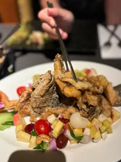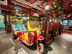 金百利商场,位于铜锣湾心脏地带,集中了不同的餐厅菜系,最近发掘了一间隐世泰式美食,餐厅布置到美食,充分体验了泰式滋味。店员为我们介绍了几道热门菜式:腌鲜果伴盲曹原条盲曹鱼经厨师的特制,去骨切件,再经油炸,外脆内嫩, 十分适合喜爱香口食物的你。配上新鲜的水果和独特酱汁,既有甜味又带有微微的酸味,让人胃口大开。水果的清爽与盲曹的香气相得益彰,既可去除油腻感,亦增添鱼的鲜味。香芋腊肠海鲜焗饭这道焗饭的香气扑鼻,香芋的柔滑质感与腊肠的咸香相得益彰,海鲜的鲜甜更是为整体增添了一层丰富的口感。米饭吸收了香芋的香气,搭配上焗至金黄的表层,外脆内软,令人一口接一口,欲罢不能。泰式虾酱炒通菜这道菜色泽鲜绿,通菜的清脆口感和虾酱的浓郁味道交融,让人感受到泰式料理的独特魅力。虾酱的咸香恰到好处,不会压过通菜的鲜甜,反而提升了菜的层次感,让人每一口都感受到清新的滋味。冬荫海鲜汤冬荫海鲜汤的酸辣味道令人难以忘怀。汤底浓郁,海鲜的新鲜味道在汤中散发,酸味与辣味的完美平衡使这道汤成为了不可错过的佳品。每一口都能感受到浓浓的东南亚风情,令人心情愉悦。餐后仔细观赏餐厅的布置,外围已放置一辆笃笃车,令人怀念在泰国旅游的日子,餐厅的墙壁亦放置了不同的泰式风情的图画,加上店内墙壁的颜色,真的像身处于泰国当地。…查看更多
