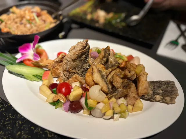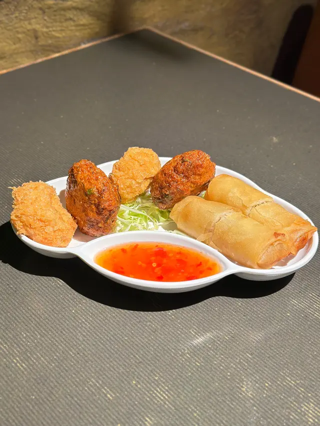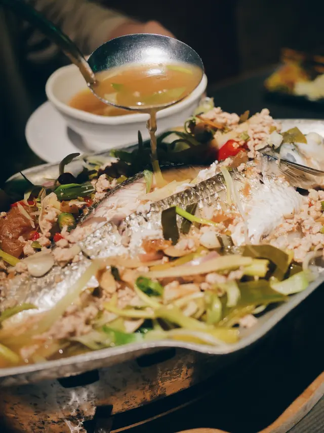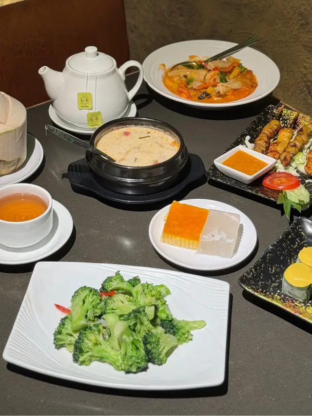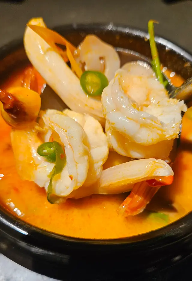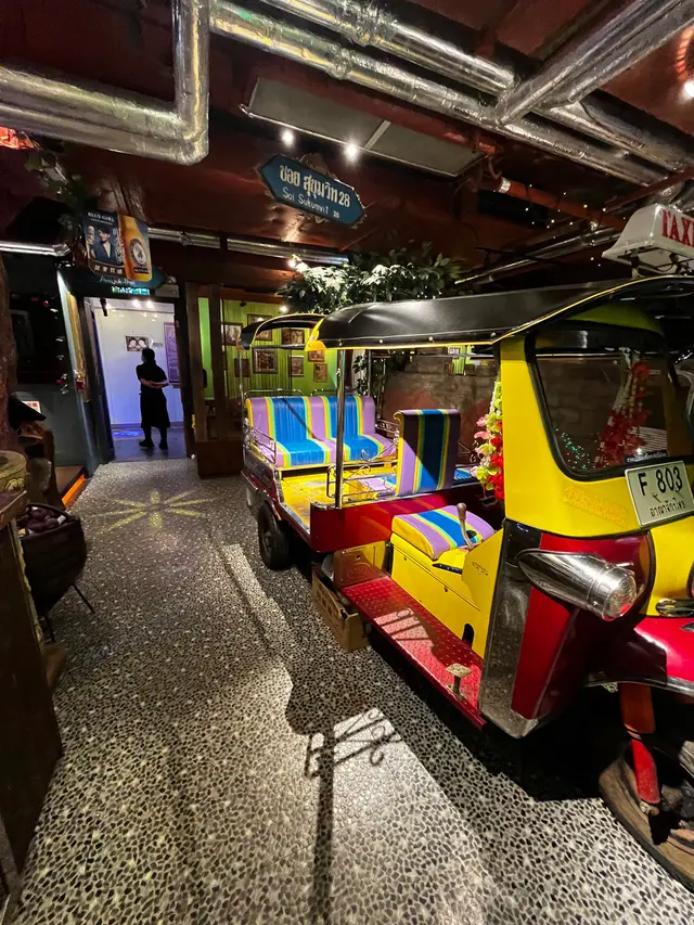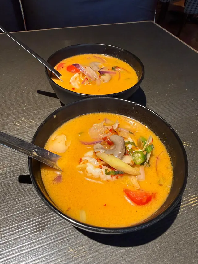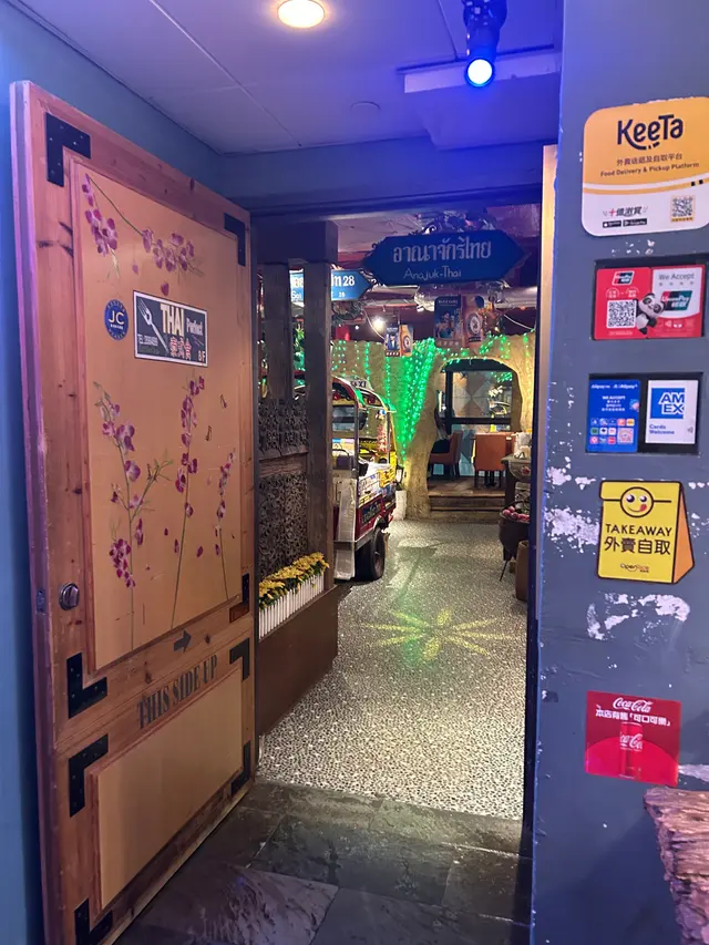金百利商場,位於銅鑼灣心臟地帶,集中了不同的餐廳菜系,最近發掘了一間隱世泰式美食,餐廳佈置到美食,充分體驗了泰式滋味。店員為我們介紹了幾道熱門菜式:醃鮮果伴盲曹原條盲曹魚經廚師的特製,去骨切件,再經油炸,外脆內嫩, 十分適合喜愛香口食物的你。配上新鮮的水果和獨特醬汁,既有甜味又帶有微微的酸味,讓人胃口大開。水果的清爽與盲曹的香氣相得益彰,既可去除油膩感,亦增添魚的鮮味。香芋臘腸海鮮焗飯這道焗飯的香氣扑鼻,香芋的柔滑質感與臘腸的鹹香相得益彰,海鮮的鮮甜更是為整體增添了一層豐富的口感。米飯吸收了香芋的香氣,搭配上焗至金黃的表層,外脆內軟,令人一口接一口,欲罷不能。泰式蝦醬炒通菜這道菜色澤鮮綠,通菜的清脆口感和蝦醬的濃郁味道交融,讓人感受到泰式料理的獨特魅力。蝦醬的鹹香恰到好處,不會壓過通菜的鮮甜,反而提升了菜的層次感,讓人每一口都感受到清新的滋味。冬蔭海鮮湯冬蔭海鮮湯的酸辣味道令人難以忘懷。湯底濃郁,海鮮的新鮮味道在湯中散發,酸味與辣味的完美平衡使這道湯成為了不可錯過的佳品。每一口都能感受到濃濃的東南亞風情,令人心情愉悅。餐後仔細觀賞餐廳的佈置,外圍已放置一輛篤篤車,令人懷念在泰國旅遊的日子,餐廳的牆壁亦放置了不同的泰式風情的圖畫,加上店內牆壁的顏色,真的像身處於泰國當地。…查看更多