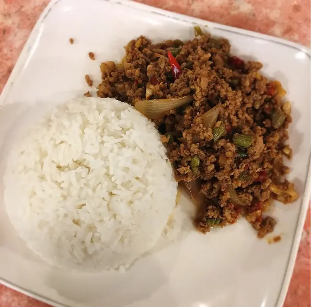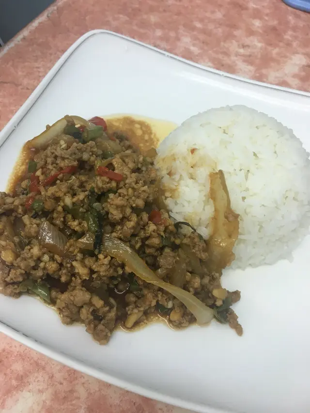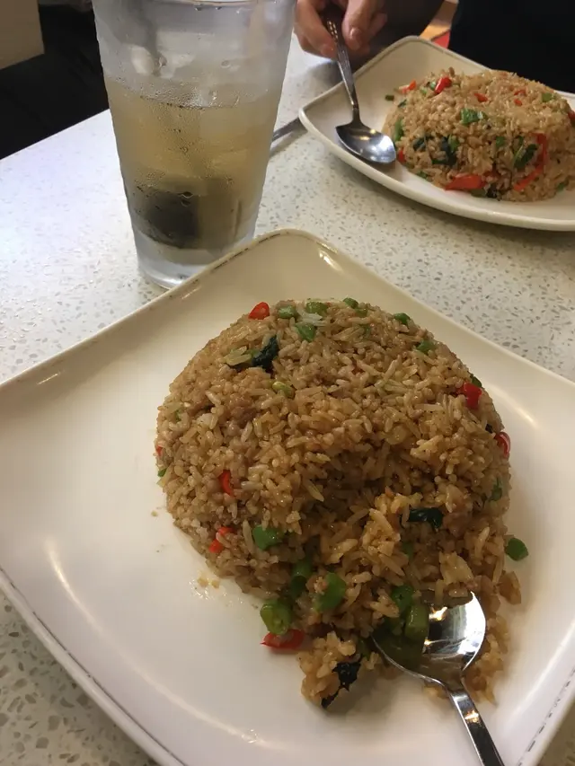 食個快餐又唔想食茶記,就入左去食泰國野餐廳地下好滑,好容易滑倒,要好小心行快餐menu:我點左兩個餐:泰式蝦醬炒飯麻麻D飯唔夠乾身同冇咩炒飯未,但勝在份量夠多。。。香葉辣椒豬肉碎飯去過泰國food court食飯,就會知肉碎飯Le d 等同香港ge碟頭飯,食落去水準都好似泰國food court 咁,唔太差ge,勝在碎肉份量都多,以快餐黎講係ok 好食碎肉入味又好夠香。。。叫左杯椰汁冰,飲左一啖,甜到頂唔順。。。餐廳地下太油要改善一下。。。不過價錢都合理,份量夠多,夠曬飽肚。。。分享完畢🙇🏻‍♀️查看更多