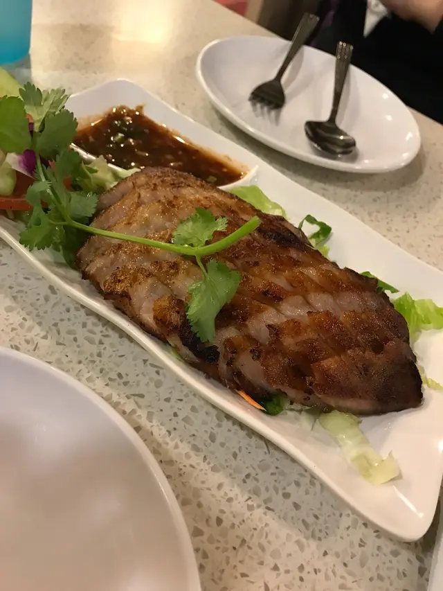 冇黎一排發現餐廳重新裝修過,美觀好多👍🏻2人晚飯叫左柚子沙津、泰式燒豬頸肉同乾咖哩炒雞肉首先係柚子沙津啦,份量雖然少左d~ 但感覺到廚師既用心位!就係沙津入面落左好多細細粒既魚乾同蝦乾碎!就係呢個details位令到成個沙津生色不少!有d魚乾同蝦乾既香味重有少少口感,好好食!泰式燒豬頸肉- 佢既皮邊都燒得脆脆,而肉入面重好juicy~ 但我最鐘意佢個sauce~ 有d lemongrass既香味乾咖哩炒雞肉- 呢個份量好多好抵食,2個人食 食極都有咁😂 佢地係用雞柳既所以好滑~個咖哩好香好甜少少辣~ 岩晒唔係好食得辣既朋友啦查看更多
