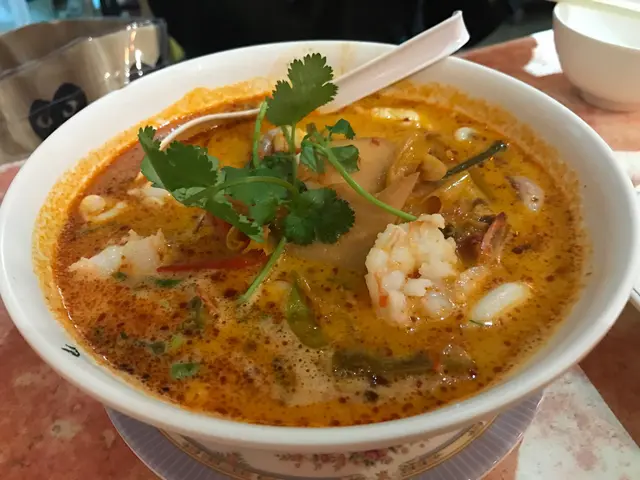 銅鑼灣食午飯的選擇太多。很久無幫襯,發覺這泰國餐廳裝過修,未夠一點鐘已滿座!但原來餐廳有「秘道」與隔離舖相連的,隔離本身賣泰國日用品及零食的舖內放了兩張枱,很有私房菜feel😝所以見到滿座都要行入去問問。午餐的餐牌分兩個,一個是星期一至日也供應的,另一個則日日不同,大致由$40幾元起,加泰式飲品則另外$8,連三色冰、珍多冰等也都只只加$8!抵!我點的海南雞飯已去骨,肉質嫩滑,好味,但隨飯附送的湯則味道有點特別,很甜,像落了糖似的,同事點了的湯米和湯粉也是用這種湯作湯底。此餐廳的員工全是泰國人,但都懂廣東話,而餐牌上的泰文字應該是方便員工閱讀多過為顧客而設😉感覺很正宗。查看更多