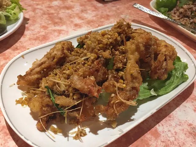 友人生日吃飯,選了在家附近的泰成餐館,在食肆林立的登龍街沒有裝修卻開了多年不倒,小儀對上一次幫襯應該也有一段時間了,正好更新一下印象~冬陰公湯:7.5/10刺激丶酸辣、一大份,很適合做開胃的湯品,但一次飲不了太多,最好五人或以上才點~香辣肉碎生菜包:8/10很辣但十分惹味,配上脆脆的生菜,good炸軟殼蟹:8/10沒有點卻送了上桌,一看大家也很想吃,有黃金蝦那種香口的感覺,用來送洒一流~泰式小食拼盤:7.5/10不算非常特別,勝在熱辣辣和香口~濕炒豬肉河:8/10河粉一大片一大片的,正宗泰國風味,而且口味比較溫和,可以中和一下其他的重口味~泰式炒通菜:7.5/10油水充足,菜便香軟好吃👍海南雞半隻:8/10雞味不俗,少少儀很喜歡(因其它菜太辣,她幾乎都不能吃😆)菠蘿炒飯:7/10可惜不是原個菠蘿上,飯內菠蘿的份量也少了點,但這樣酸酸甜甜的炒飯倒也不會太差芒果糯米飯:6/10比較失望的一道,因糯米飯很硬,還未完全煮透,份量也較少~椰汁千層糕:6.5/10新鮮蒸起的,口感卻有些奇怪,以性價比來說,甜品類的質素一般,可以不吃~整體來說是走刺激豪邁路線的泰國菜,是適合一大班人飲啤酒聊天的大排檔風味呢~查看更多