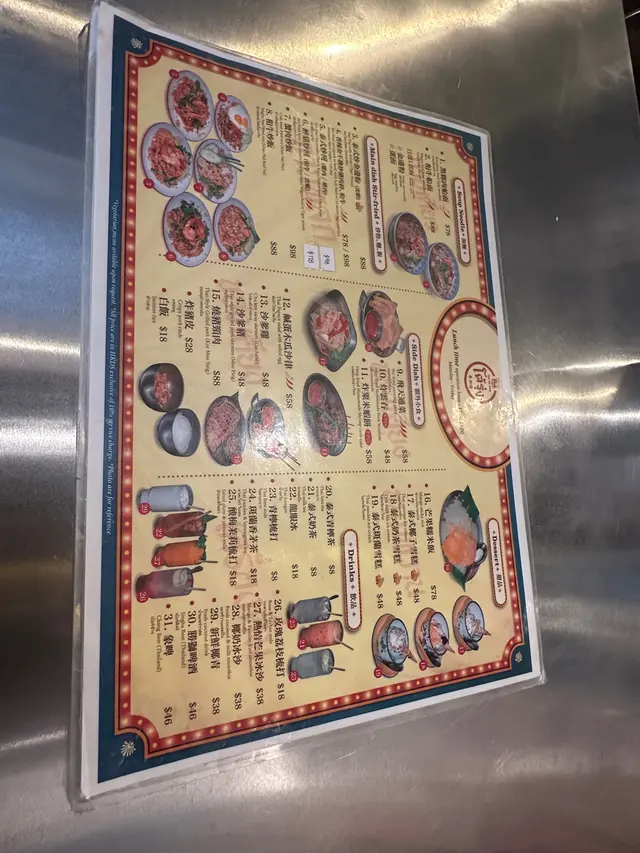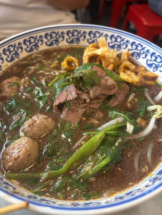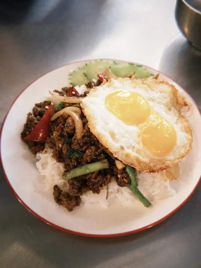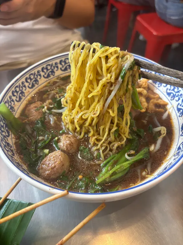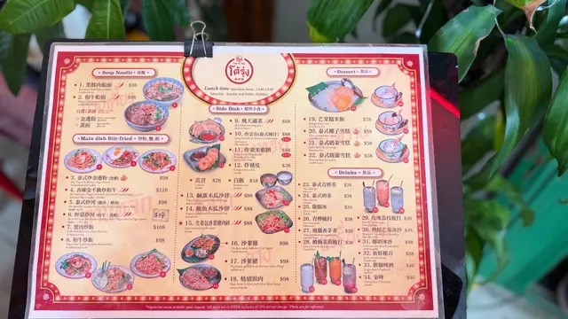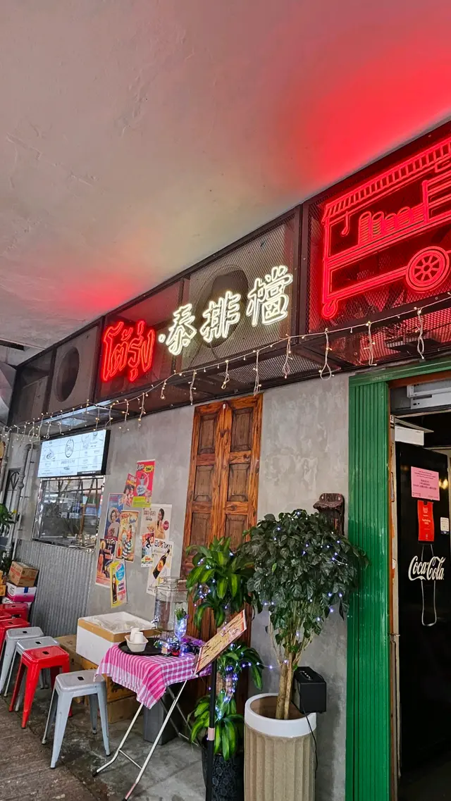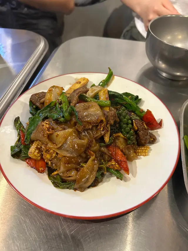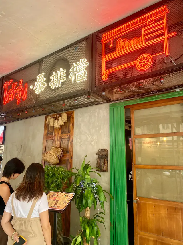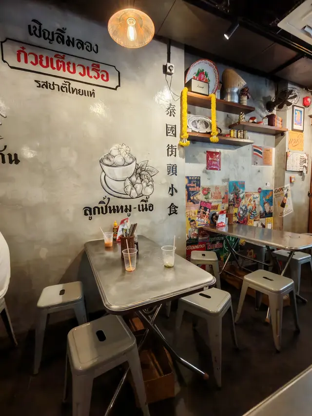 今日下晝同朋友嚟咗泰排檔。餐廳係米芝蓮推薦,成日大排長龍!牆上掛住好多泰國裝飾,真係有濃厚嘅泰國味。餐廳概念同泰國thongsmith一樣,供應各種地道泰國街頭美食,而且價錢好平。餐廳九成食材同香料都從泰國直接入口。廚房同樓面嘅人全部都係泰國人,特別係大廚,佢係米芝蓮出身,食物嘅質素一定有保證。和牛船面 $88呢碗和牛船面係招牌菜,金邊粉滑溜,湯底又鮮又甜,帶住濃濃嘅香料味,食到有香茅、檸檬葉等香料。和牛肉質好嫩,油花分布得好均勻,充滿油香。金邊粉口感更添彈性,吸收晒湯底嘅美味。其他配料仲有芽菜、通菜、牛丸,非常豐富。香辣金不換炒豬肉碎 $78呢度都係招牌菜,好出名!豬肉碎炒得香噴噴,熱辣辣,非常惹味!內裏有紅椒、洋蔥,口感都好豐富。辣味啱啱好,唔會太過刺激,真係一口接一口。最重點係面頭有兩隻流心太陽蛋,配埋蛋黃汁一齊食真係特別好味。醉貓炒河 $118河粉炒得恰到好處,滑滑地,帶點煙靭,好有鑊氣。醬汁好惹味,辣辣地,河粉吸埋醬汁嘅味道。和牛肉質嫩滑,芥蘭同紅椒爽脆,口感多元化。泰式奶茶 $8泰式奶茶好抵飲,甜而唔膩,茶香濃郁,好正宗。龍眼冰 $18龍眼冰清爽可口,龍眼嘅天然甜味,加上冰冷嘅感覺,好解渴。…查看更多