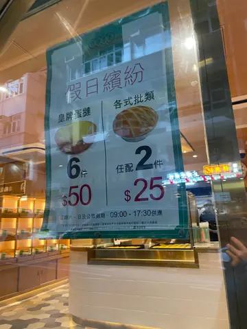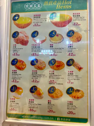 Tai Cheong Bakery has several branches. They sell Hong Kong pastry like egg tarts, pineapple bun or egg rolls to just name a few. It become famous for the last Governor of Hong Kong, Honorable Chris Patten, going in and out.We got two egg tarts, one cookie crust and the other one puff pastry. The puff pastry almost fall apart while taking it out of the Aluminium mould, which can be a sign for its freshness. The taste was quite normal, basic standard of Hong Kong egg tart. The custard was thick and not liquid.:)The pastry + coffee or milk deal was good and saves you some $…查看更多