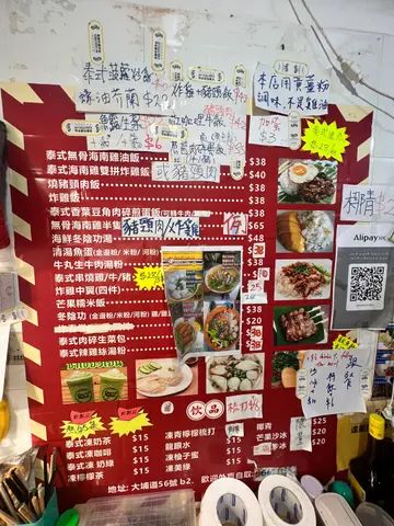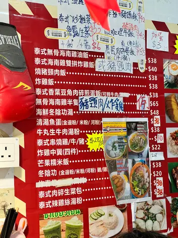 餐厅老板娘是泰国人,虽然店面很小,但提供的菜式不少,大路的泰菜也有,例如海南鸡饭、冬荫功粉、生菜包、香叶肉碎饭、鳯爪沙律、芒果糯米饭等。饮品亦有泰式奶茶、奶绿、龙眼水、椰青等。今次叫了$40双拼海南鸡炸鸡饭+$6跟餐价冻奶绿,以及$48冬荫功汤+$6跟餐价饭。海南鸡皮薄,肉算滑,不错。冬荫功汤有不少海鲜如虾、青口、蛤仔、小鱿鱼,但味道偏咸。饭是姜黄饭。奶绿奶味茶味都明显,甜度和冰量与某泰奶集团的「少甜少冰」相约。应该会再买,尤其是鸡饭和泰奶。…查看更多