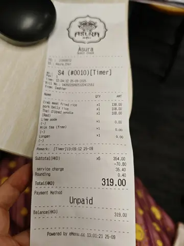 行过呢间餐厅见隐藏系一条小巷中,午市餐牌有8折,又有不少人已就座就去试下。招呼的职员满满泰文口音的广东话,转头就用泰文同厨房楼面落单,一下子就觉得自己去左泰国。点了蟹肉炒饭、泰式红咖哩虎虾沾面、泰式香脆猪腩肉饭秘制酱汁。第一次见泰式都有沾面,从未见过就点了一份来试。蟹肉炒饭非常有镬气,泰式脆皮猪配酱汁非常开胃,沾面有芽菜、紫椰菜及酸菜作配料,红咖哩酱内有花生碎,增添了香味及口感,虽然虎虾只得两只,但鲜甜弹牙,咖哩拌沾面混合其他配菜吃口感都不错,天气热的时候不想吃饭,不妨换个口味。午市有加一…查看更多