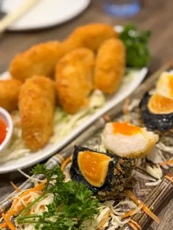 很喜欢佐敦泰泰各种独特自创菜式,早前乔迁至附近新舖,即刻约朋友嚟食一餐先。先嚟生虾刺身 $138 及 鱿鱼游戏 $168 热下身,坚持用新鲜虾做嘅生虾刺身零舍鲜味,坊间雪藏货没有虾头的喔,而店子就连虾头都炸香,实行一虾两食。鱿鱼游戏即鱿鱼沙律,用咗3款不同嘅鱿鱼,鲜鱿鱼筒、水鱿及秘制小土鱿,配上秘制沙律汁,酸酸辣辣好醒胃。一行 8人,虾多士 $138/4件 要2份先够滋味,虾胶弹牙,用米通代替面包,炸得香脆不油腻,黑金黄金入球 $143 ,用新鲜墨鱼滑包著咸蛋黄蓉再炸至金黄色,切开后造型看似熟蛋,入口外脆内爽弹,加淡淡咸蛋香,黑色版本是加了墨汁的墨鱼滑包著黄金皮蛋黄,一样好好味。主菜点咗青柠烧牛肉 $238,店子推介多一款星河烧牛肉 $238,比起青柠酱汁嘅酸辣,星河烧牛肉多一份胡椒香,配上豆角香叶用生菜包嚟食,又另一番感觉。粉丝虾煲 $238 保持水准,最钟意粉丝完全吸尽鲜虾精华而且好干身,食落依然爽滑。本来想食鸭肉生菜包,老板介绍另一变奏版,小炒王生菜包 $138 ,加入韭菜粒及黄金皮蛋白粒更惹味,配上紫椰菜,又好夹呀。最后差点忘记的清迈酸辣罗非鱼 $238,因为造型又名飞天鱼,整条鱼起骨切件炸起加泰式酸辣酱汁,友人见仲有生菜就包鱼块嚟食,多一点清爽。 店子饮品都做得好精致洛神花沙冰,芒果沙冰及原个椰青沙冰都啱夏天饮,最后甜品芒果糯米饭满足埋个甜品胃。…Read More