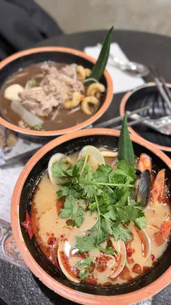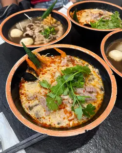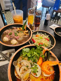 🔹️今日到尖沙咀 “泰浓面“ 下午茶🥢 店内充满泰国风情💫 环境整洁卫生🌿 食物有水准👍 店员有礼👨💼👩🏻💼 价钱亲民💰🔸️炸芝士云吞🧀🥠炸芝士云吞外皮炸至金黄酥脆, 包满著浓郁咸香芝士, 口感丰富😋🔸️青木瓜沙律🥗青木瓜沙律的味道是酸、甜、鲜, 香, 口感鲜嫩爽脆, 融合了青木瓜的清脆、花生和红椒的香气, 十分开胃🤤🔸️炸鸡翼🐔鸡翼炸至外皮香脆、肉质鲜嫩幼滑, 配上泰式酸辣酱So Yummy👍🔸️美国肥牛船汤薯粉🥩🍜美国肥牛肉质软腍、味道浓郁、咸、香、酸, 泰式船汤风味, 薯粉晶莹剔透, 口感弹滑 ,还有脆口猪皮、鲜甜萝卜和弹牙鱼蛋 😋🔸️黑豚肉金边粉🥓🍜黑豚肉鲜香软嫩、配鲜味清汤底、幼滑金边粉、鱼香味浓鱼蛋、鲜甜萝卜和鲜嫩秋葵👍🔸️泰式特色糕点拼盘🍱拼盘以泰式椰汁糕🥥泰式班兰糕🧆椰汁糕🥥 充满浓郁椰子香味和椰奶香滑口感👍班兰糕🧆 以新鲜的班兰叶和椰子组合, 味道清香、口感Q弹滑嫩💕🔸️泰国香茅班兰梳打特饮🧉香茅班兰梳打特饮散发出天然草本香气、入口清新甘醇🫰🏻…查看更多