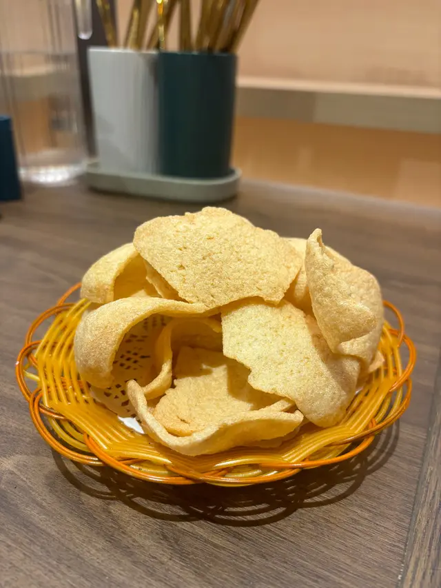 平日晚上,餐廳差不多滿座,好彩預早有訂枱。餐廳戶外地方仲可以帶寵物用餐,十分友善。我哋一入座就免費送上小食蝦片,脆卜卜,好香蝦味