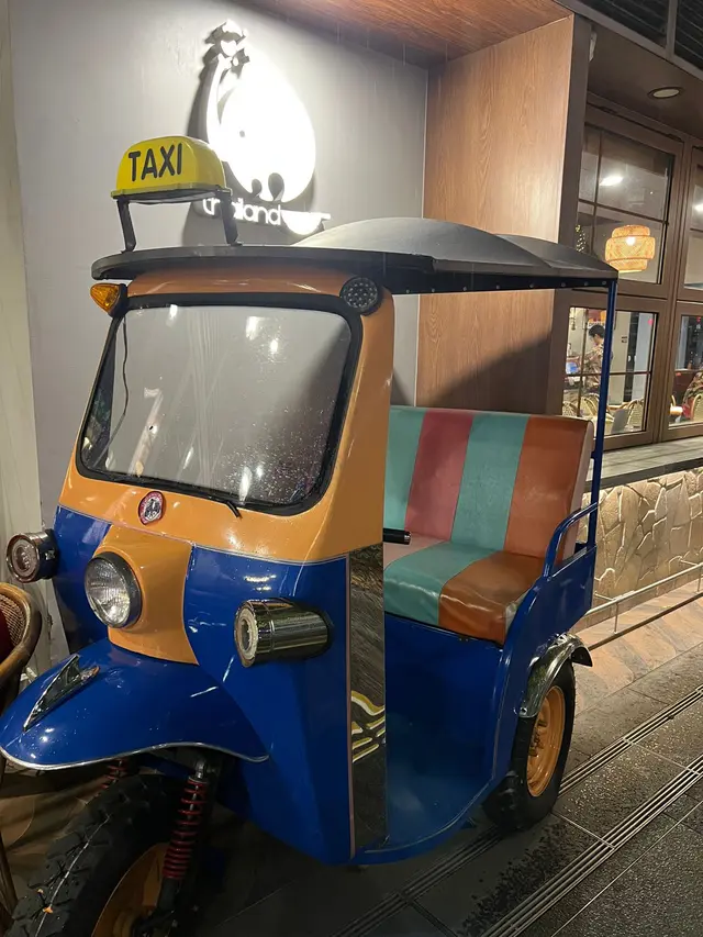 今日朋友約咗去北角食泰國菜,仲一早訂咗枱7:30pm 到達~泰瀾鑊。餐廳門口有懷舊泰國的士可以打卡⋯⋯篤篤車