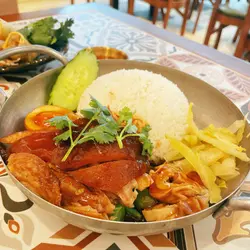 趁放假谂住去睇下中秋灯笼,顺便去放松睇下人地D狗狗所以就去左Go Park。喺无咩选择既情况下就拣左呢间泰国餐厅。👉🏻泰式海南鸡饭 $98✨油饭唔香,无咩味,饭偏干身。海南鸡唔滑,得两三旧近髀位系滑既,其他都嚡身。不过个海南鸡酱酸酸甜甜几开胃,钟意个汁多过D鸡🤣附送既冬瓜汤好重味精,饮完好口干👉🏻猪颈肉冬阴功檬粉 $88✨卖相一般,但味道唔错。冬阴功味够酸,亦都唔会无阴功🫢满满嘅香料味,檬粉中规中矩,食落挂汤,而且猪颈肉食落亦都够嫩,唔会咬唔郁👉🏻金砖蒜蓉多士 $18✨蒜蓉味十足,闻落都好香,食落十分松脆可口,同埋都几大件,不过就好咸,好浓味🤣👉🏻芒果沙冰✨唔会好细杯,沙冰口感绵密,唔会饮到一旧旧冰,不过无咩芒果味,同埋有沟水既感觉🥲无对比就无伤害,泰美味个杯芒果沙冰系好饮好多👉🏻椰子沙冰✨椰子味香浓,每饮一啖都有好香既椰子味,饮得岀无沟水稀释,甜度适中,口感绵密。呢杯好饮过芒果沙冰…查看更多