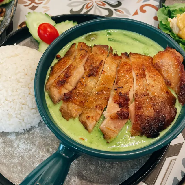 趁放假諗住去睇下中秋燈籠,順便去放鬆睇下人地D狗狗所以就去左Go Park。喺無咩選擇既情況下就揀左呢間泰國餐廳。👉🏻泰式海南雞飯 $98✨油飯唔香,無咩味,飯偏乾身。海南雞唔滑,得兩三舊近髀位係滑既,其他都嚡身。不過個海南雞醬酸酸甜甜幾開胃,鐘意個汁多過D雞🤣附送既冬瓜湯好重味精,飲完好口乾👉🏻豬頸肉冬陰功檬粉 $88✨賣相一般,但味道唔錯。冬陰功味夠酸,亦都唔會無陰功🫢滿滿嘅香料味,檬粉中規中矩,食落掛湯,而且豬頸肉食落亦都夠嫩,唔會咬唔郁👉🏻金磚蒜蓉多士 $18✨蒜蓉味十足,聞落都好香,食落十分鬆脆可口,同埋都幾大件,不過就好鹹,好濃味🤣👉🏻芒果沙冰✨唔會好細杯,沙冰口感綿密,唔會飲到一舊舊冰,不過無咩芒果味,同埋有溝水既感覺🥲無對比就無傷害,泰美味個杯芒果沙冰係好飲好多👉🏻椰子沙冰✨椰子味香濃,每飲一啖都有好香既椰子味,飲得岀無溝水稀釋,甜度適中,口感綿密。呢杯好飲過芒果沙冰…查看更多