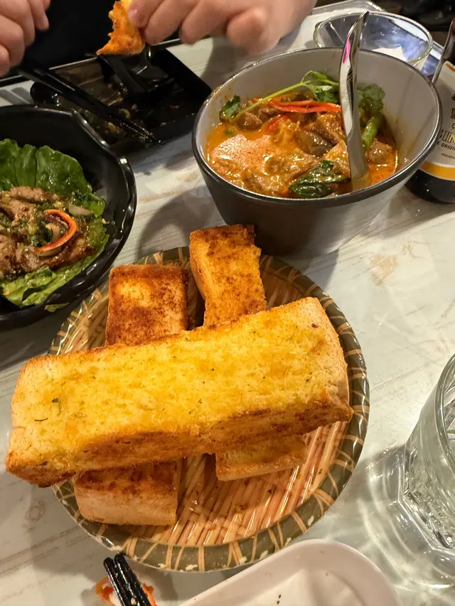好抵食🤑足料又足份量既泰菜🇹🇭餐廳係泰國人主理,依餐真係泰滿足啦😌~•~•~•~•~•~•~•~•~•~•~•~•~•~•~•~•~•~•~• ▪椰汁雞湯 ($108)冬陰功外既經典湯品之一🍲嫩雞肉🐔 • 蕃茄仔🍅 • 香茅 • 檸檬葉...香料,椰汁🥥中和湯既辛辣,溫和中帶微酸🤍.▪麵包咖哩軟殼蟹 ($208)好有睇頭呀,好夠份量😳大大個索滿汁既麵包🥖,裝住酥脆軟殼蟹🦀 • 青 / 紅椒...,惹味濃稠既咖哩汁。旁邊仲有多舊烘脆脆麵包可清汁😚.▪鐵板蠔餅 ($138)飽滿脹卜卜既蠔肉🦪,金黃酥香邊邊既蛋🥚底有芽菜,點甜辣醬食。.▪馬拉盞炒通菜 ($78)通菜索晒汁,微微辣帶蝦香🌶️🦐。菜另可揀泰式 / 蒜蓉炒🔥.▪午餐Set Lunch ($38起)有多款飯餐🍛 • 湯粉🍜,包埋野飲(咖啡☕️/茶🥤).▫️ 鮮蝦炒金邊粉 ($60)好大碟!大蝦🦐 • 豆乾 • 韭菜...炒得乾身唔油🧡旁邊有花生碎🥜 • 糖,有齊鹹 • 酸 • 甜好有泰國感覺🇹🇭.▫️ 泰式炆豬手飯 ($65)好多舊QQ彈彈既連皮豬手🐷,表面有令令油光。炆煮得入味鹹甜適中,肉又夠淋🤎仲有半隻蛋🥚 • 醃菜 • 菜🥬.▪小食▫️無骨鳳爪沙律 (跟午餐加+$38)泰式酸辣汁,酸酸辣辣好開胃😝.▫️泰式春卷 (跟午餐加+$22)幼長春卷皮炸脆脆💥包滿蔬菜。點埋泰式甜酸醬,香口好快清左🧡.▪泰式特飲 (跟午餐加+$12) ▫️珍多冰 : 綠色粉條Q彈爽爽💚▫️咸檸七 : 鹹鹹甜甜,有汽夠GurGur🫧.~•~•~•~•~•~•~•~•~•~•~•~•~•~•~•~•~•~•~• 🔺午餐(星期一至日 11:45 - 17:30)免收加𝟏𝟎%服務費🙆🏻♀️ ~•~•~•~•~•~•~•~•~•~•~•~•~•~•~•~•~•~•~• …查看更多