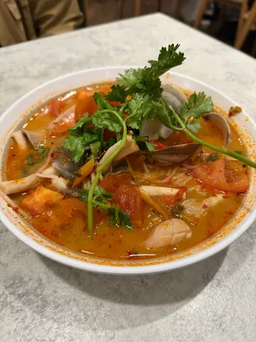 收工夜左所以去附近商场食饭,见到依间睇落唔错就入去食,坐底叫左招牌焗黄咖喱面包软壳,串烧沙嗲半打,鲜虾炒金边粉同埋(小)甜品拼盘。碟串烧沙嗲睇落真系好正啊,成排肉串烤到金黄色,表面仲有少少焦香,油光闪闪,超级惹味,肉串食落去好弹牙,肉串就肥瘦均劲,咬落去好juicy。跟住个沙嗲酱,颜色够浓稠,闻落都应该好香蒜好香辣花生,蘸一蘸绝对系升天级享受,仲要用个铜碟盛住,好有泰国街头feel。个鲜虾炒金边粉卖相真系靓到发光,河粉炒得干爽有镬气,粒粒分明,唔会太笠太油,色泽金黄透亮,睇得出火候啱晒。鲜虾又大只又弹牙,虾肉饱满到想即刻咬落去,仲有脆口豆芽、香口虾干碎、炒蛋同花生碎,层次超丰富,味到酸辣甜咸平衡得好好。至于个焗黄咖喱面包软壳蟹真系夸张到爆灯, 只软壳蟹炸到金黄酥脆,成只企喺度好霸气,然后整只被热辣辣、香浓到痺嘅泰式黄咖喱淋到满泻,咖喱汁稠到发亮,睇得出落足椰奶同香料,香到隔篱枱都闻到, 最正系个面包底!原块厚切吐司被咖喱浸到软熟但仲有啲脆边,一啖咬落去系「松软+酥脆+咖喱爆香」三重口感,仲要吸晒汁,超邪恶。最后个泰式甜品拼盘真系靓到唔似真,完全系饭后完美ending, 系经典椰汁西米糕,白白嫩嫩,上面仲有少少椰丝同黄豆粉,咬落肯定软糯香滑,满口椰香。仲有绿色条纹嘅系班兰椰奶果冻,颜色翠绿得像块翡翠,食落清新班兰香+浓浓椰奶,冰凉弹牙,超解渴。同埋两杯迷你布丁,奶荼味好诱人,表面仲有气泡,睇得出够creamy够滑。…查看更多