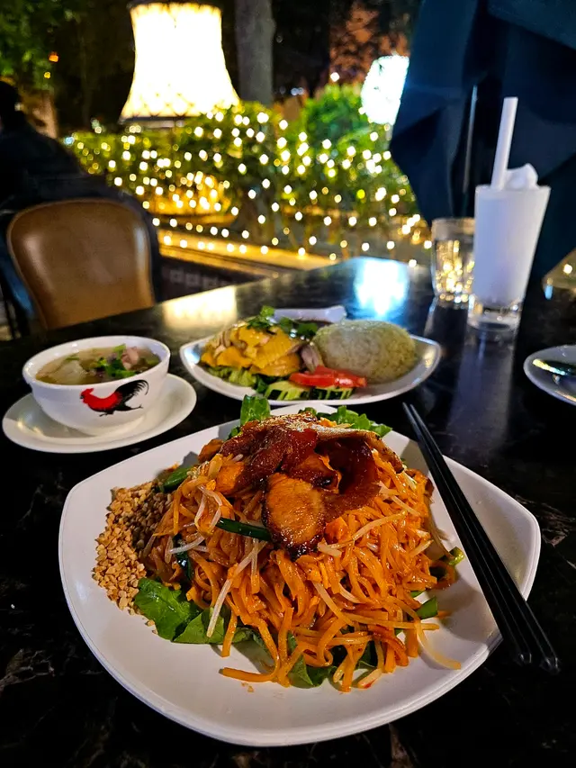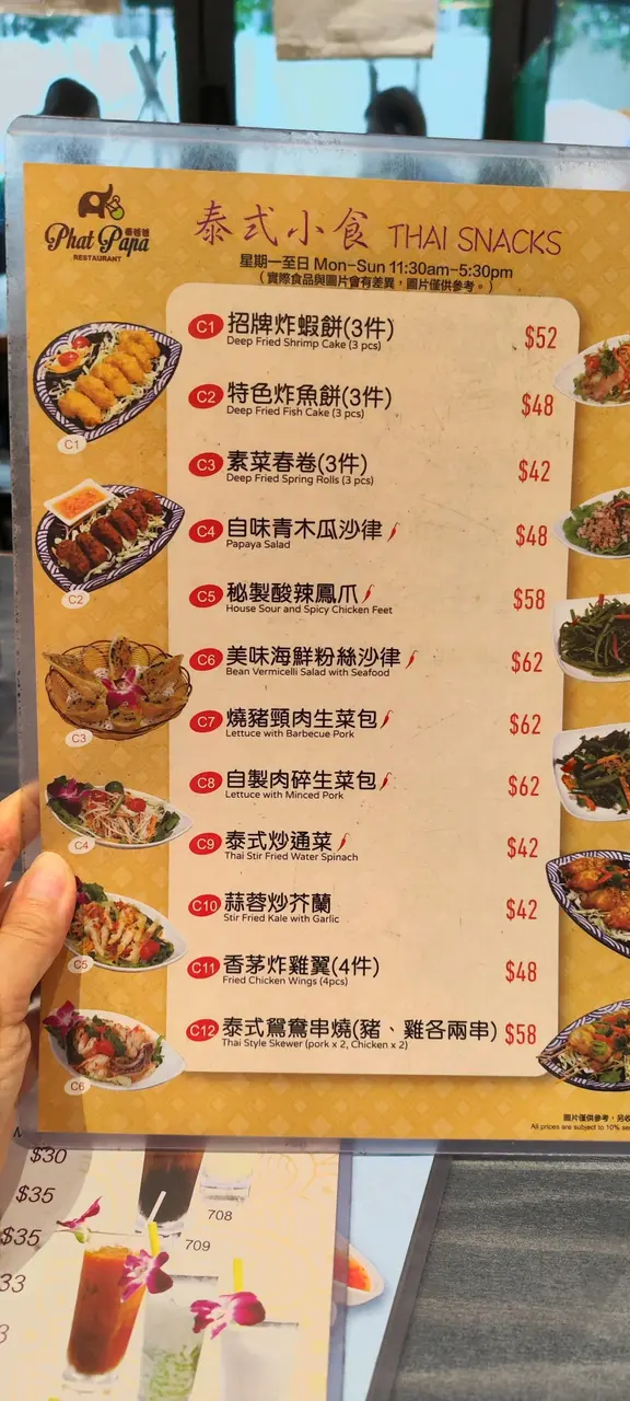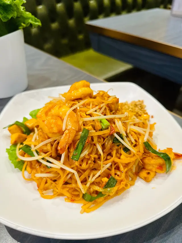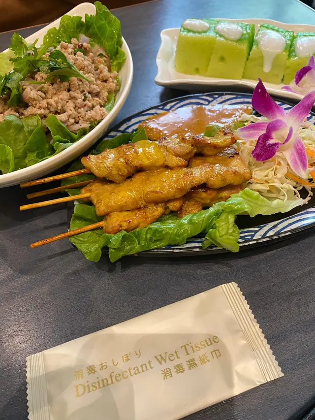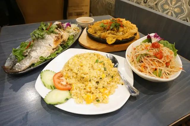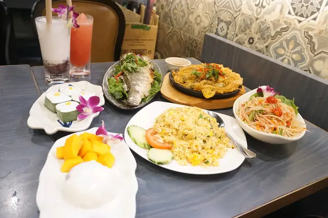 這家泰國人主理的小店,有室內也有戶外座。午後坐到戶外,微風過樹影,頗自在。五個人點菜,不用多想,先來泰式拼盤:炸蝦餅、炸魚餅、春卷和烤雞肉,一口酥一口嫩,配沙嗲醬最稱職。招牌蝦餅與魚餅另叫一份,加深滿足。鮮菠蘿海鮮炒飯盛在半個菠蘿裡,飯粒乾爽,果香提味;鮮蝦炒金邊粉鑊氣足,酸甜平衡,花生與芽菜添口感。黃咖哩牛腩濃而不膩,馬鈴薯入味,配白飯剛好。再點鴛鴦串燒,豬雞各兩串,微焦帶汁;雜錦湯粉把魚蛋、魚片、豬頸肉都放進去,清中帶香,收尾舒服。份量實在,價格厚道,味道直爽,有泰國街邊大排檔的影子。…查看更多