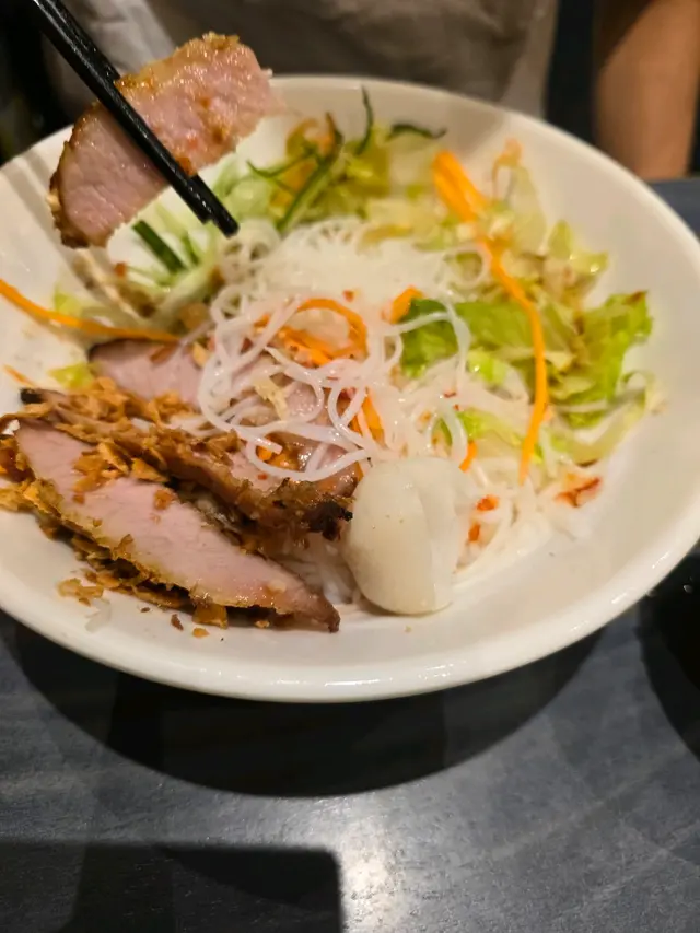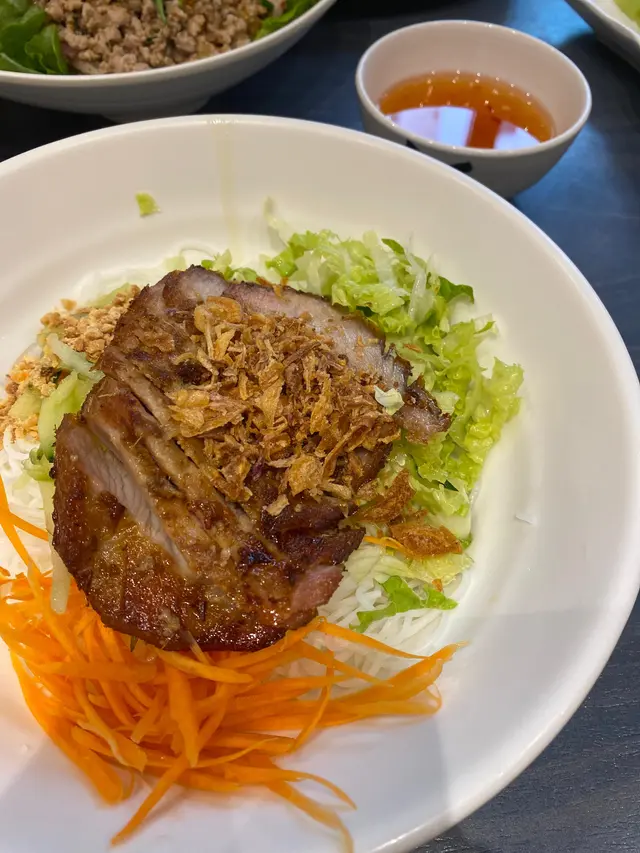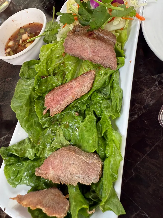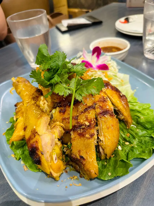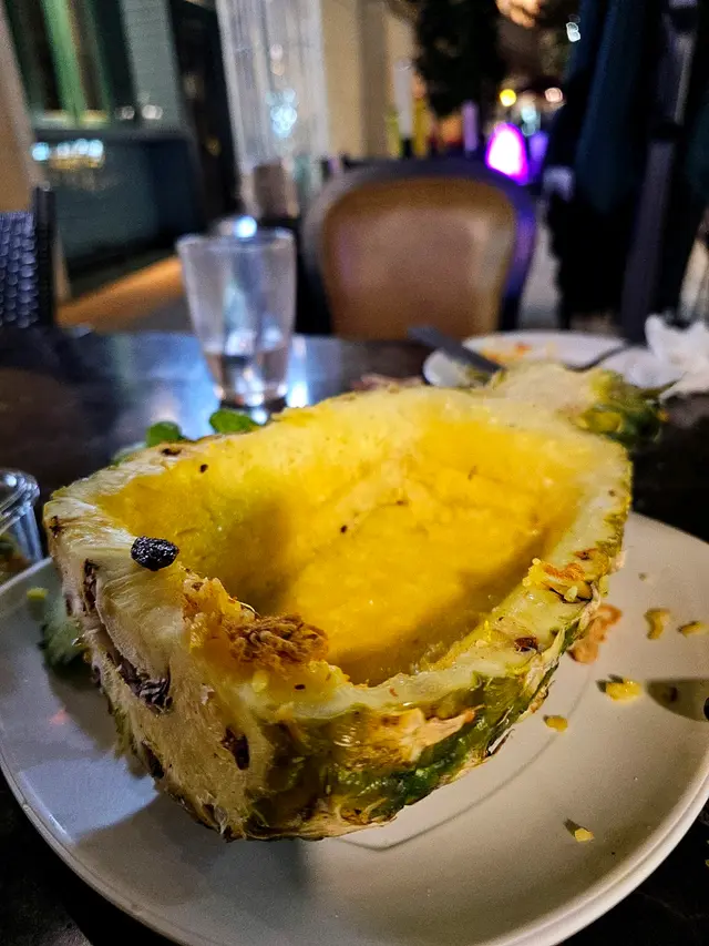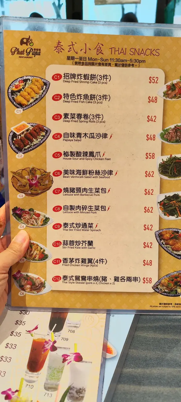 這家泰國人主理的小店,有室內也有戶外座。午後坐到戶外,微風過樹影,頗自在。五個人點菜,不用多想,先來泰式拼盤:炸蝦餅、炸魚餅、春卷和烤雞肉,一口酥一口嫩,配沙嗲醬最稱職。招牌蝦餅與魚餅另叫一份,加深滿足。鮮菠蘿海鮮炒飯盛在半個菠蘿裡,飯粒乾爽,果香提味;鮮蝦炒金邊粉鑊氣足,酸甜平衡,花生與芽菜添口感。黃咖哩牛腩濃而不膩,馬鈴薯入味,配白飯剛好。再點鴛鴦串燒,豬雞各兩串,微焦帶汁;雜錦湯粉把魚蛋、魚片、豬頸肉都放進去,清中帶香,收尾舒服。份量實在,價格厚道,味道直爽,有泰國街邊大排檔的影子。…查看更多