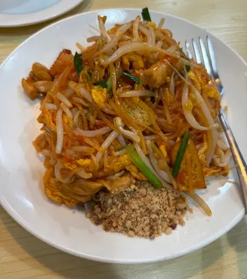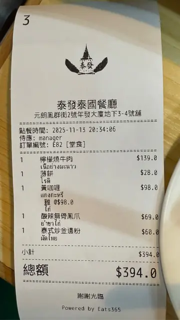 听到好多人讲过元朗都有好多特式地道美食、就去咗揾好嘢食真系太多、周围行望见这一间泰国菜、听到朋友讲过这间泰发泰国餐厅、系九龙城开到元朗到现在系第四分店🤔、门面绿色好有泰式地道风格、佢嘅每一款美食卖相都睇得吓、比起一般泰式菜都算唔错、同时又望到店家刚刚第一日新开张☺️新舖张地道嘅味道用嚟做小食、咁有地道美食一定要试吓、泰式鱼蛋、小熊泰式奶茶🤭!泰式海南鸡饭 $55转鸡髀+$5呢一款海南鸡饭望见卖相都唔错、好有地道风味尤其是海南鸡、配埋自家制酱汁就系灵魂、每一件鸡肉肉质腍嫩外皮脆口、沾吓酱汁别一般的味道😋、佢嘅鸡饭啖啖粒粒鸡油香味😙、一啖饭一啖鸡真的好正☺️!咖哩椰青海鲜 $148呢一款咖哩椰青海鲜睇得又食得😯、好特别卖相椰青色香味都有、里面放咗不同配料青口、鱿鱼、鲜虾、椰青肉条、整个满满咖哩汁送到上枱香喷喷😚、每一款配料沾满咖哩汁、都好新鲜爽口又惹味😋!辣椒膏炒鲜鱿$98呢一款炒鲜鱿系用咗辣椒膏几款配料嚟炒、真的好有地道美食风味🤔、整碟卖相色泽色香味都有😙、食到入口我以为好辣☺️、完全唔辣好惹味鲜鱿烟靭带点腍口、味道好正😋真的唔错!泰式炸春卷 +$26呢两款地道小食我最喜欢食、炸春卷外皮薄而脆口包里不同配料、口感丰富沾吓酱汁令到味道更加好食😋!蒜蓉包$30呢一款蒜蓉包送到上枱香喷喷😚整件蒜蓉包金黄脆而香口卖相、入口啖啖蒜香脆点口感😋味道都唔错!冻式奶茶 +$3珍多冰 $29呢两杯冻饮系泰国地道饮品、奶茶味道特别比起一般港式有D唔同、珍多冰淡白色卖相、入口啖啖椰香青甜口感、加埋其它配料软滑口感、两者都几好饮!佢嘅樽仔小熊奶茶卖相得意😍、载满香滑浓浓泰味奶茶、入口香滑味道浓厚、配埋泰式鱼蛋味道特别、口感爽弹加埋酱汁、味道比起一般令一种味道!…查看更多